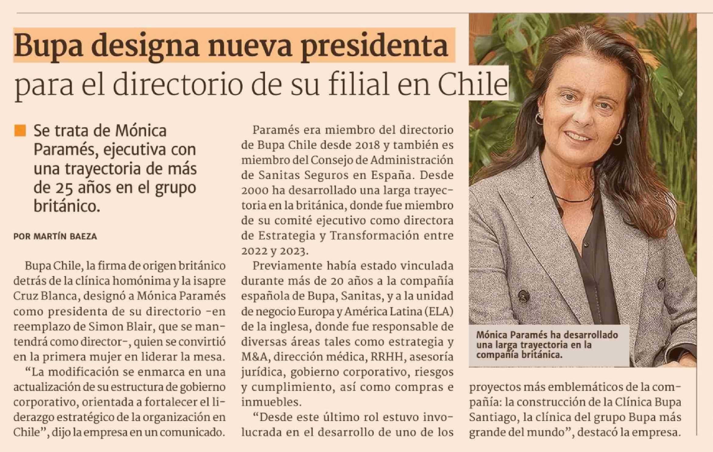 Título: Bupa designa nueva presidenta para el directorio de su filial en Chile