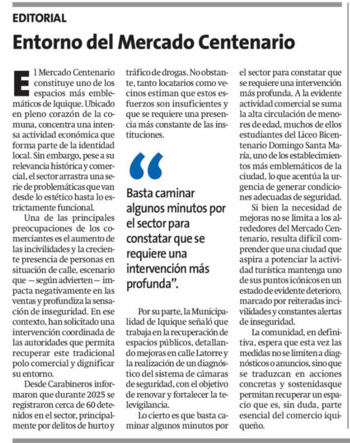 Editorial: Entorno del Mercado Centenario 03-03-2026 La Estrella de Iquique |