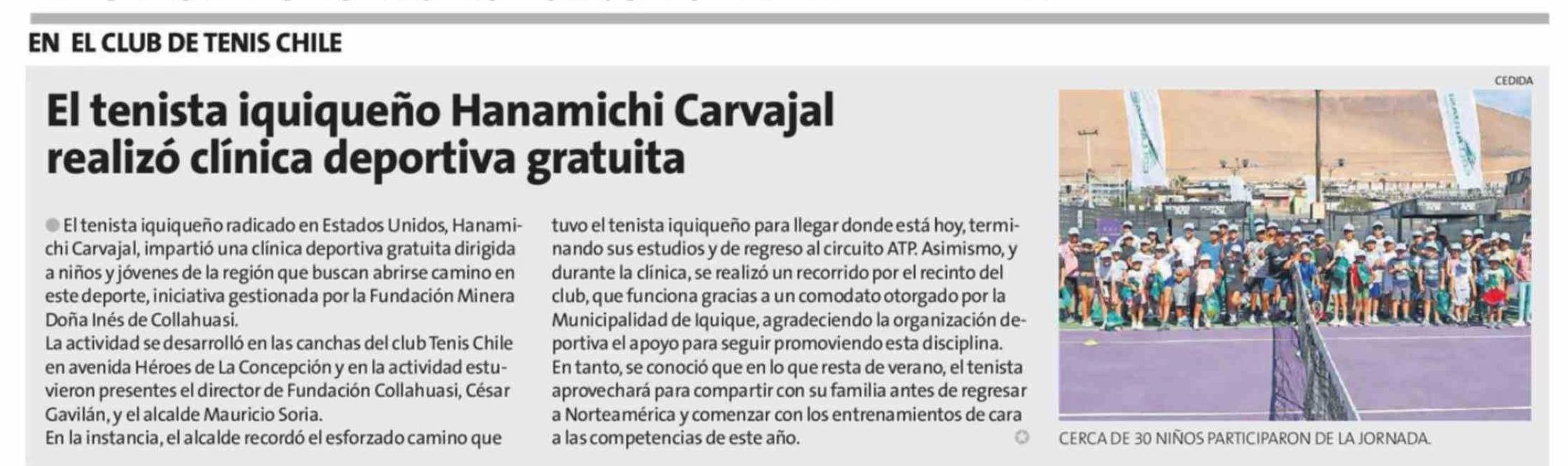 Título: El tenista iquiqueño Hanamichi Carvajal realizó clínica deportiva gratuita