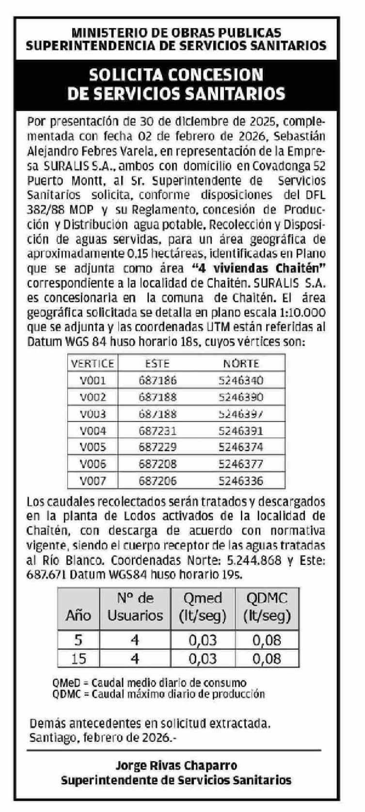 EXTRACTOS: SOLICITA CONCESION DE SERVICIOS SANITARIOS 15-04-2026 El Llanquihue |