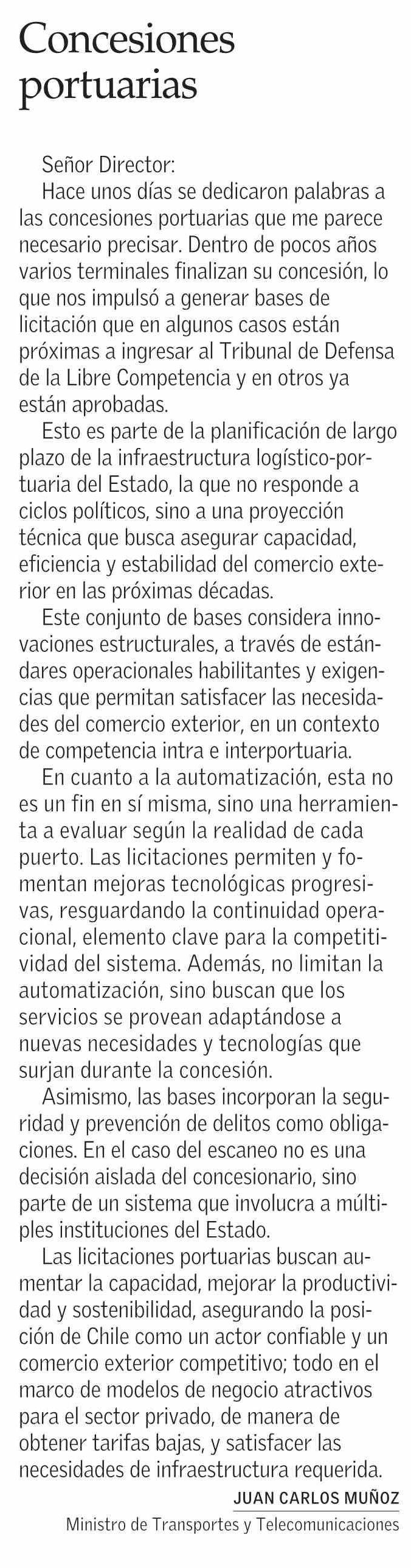 Cartas: Concesiones portuarias 09-01-2026 El Mercurio |