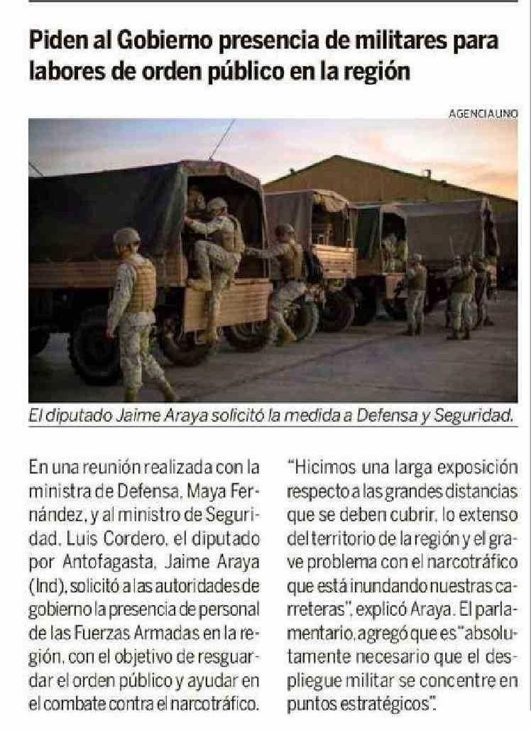 Piden al Gobierno presencia de militares para labores de orden público en la región 20-05-2025 Hoy x Hoy Antofagasta |