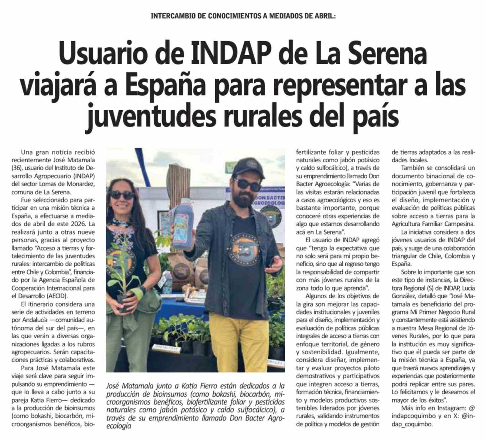 Título: Usuario de INDAP de La Serena viajara a Espana para representar a las juventudes rurales del país