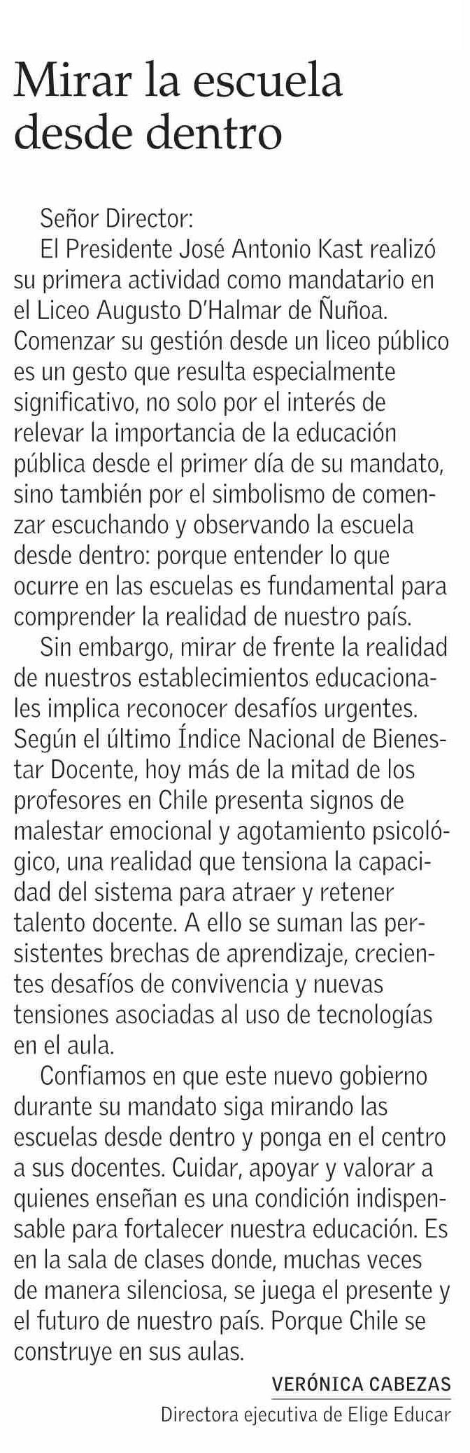 CARTAS: Mirar la escuela desde dentro