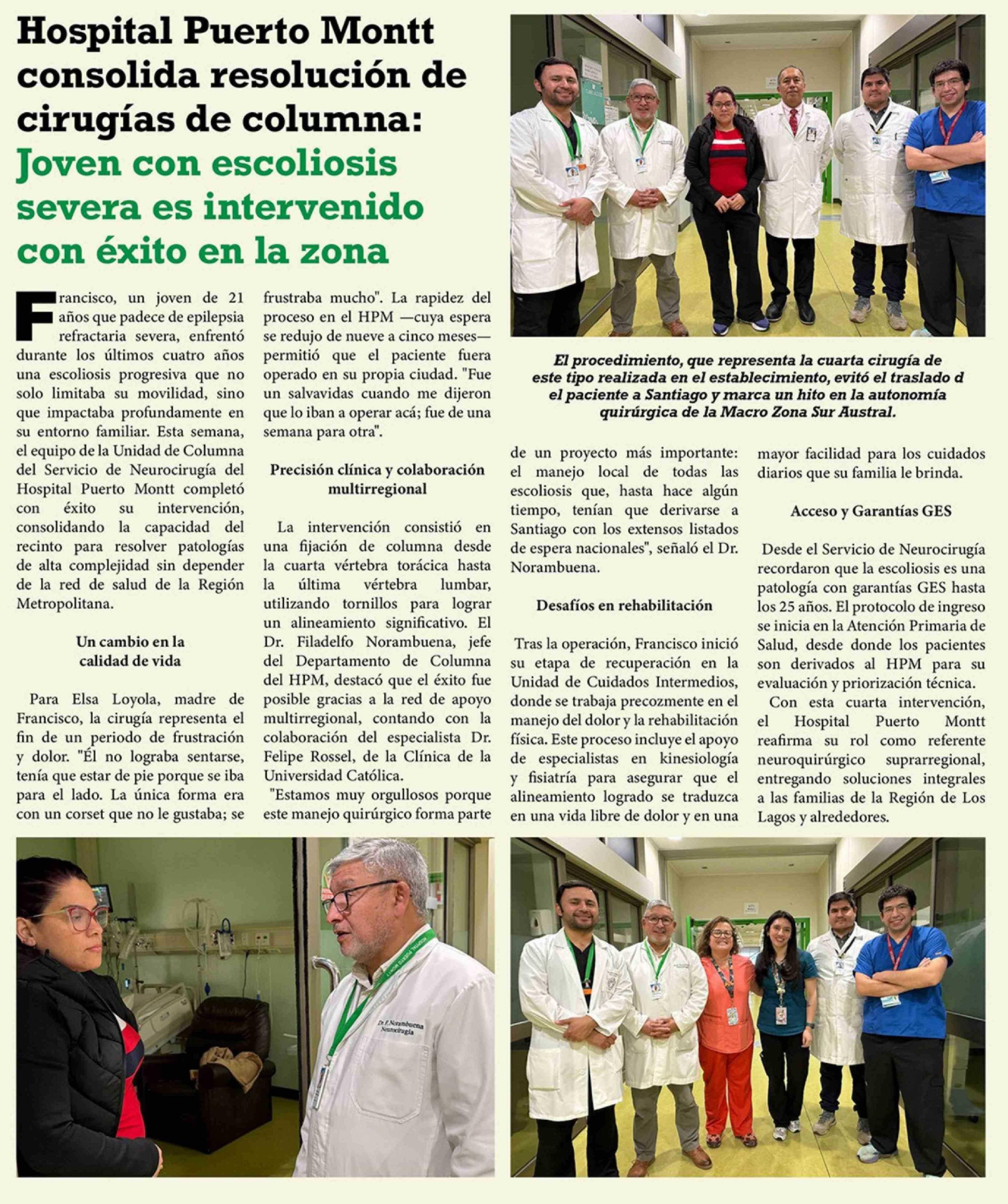 Hospital Puerto Montt consolida resolución de cirugías de columna: Joven con escoliosis severa es intervenido con éxito en la zona 14-04-2026 El Heraldo Austral |