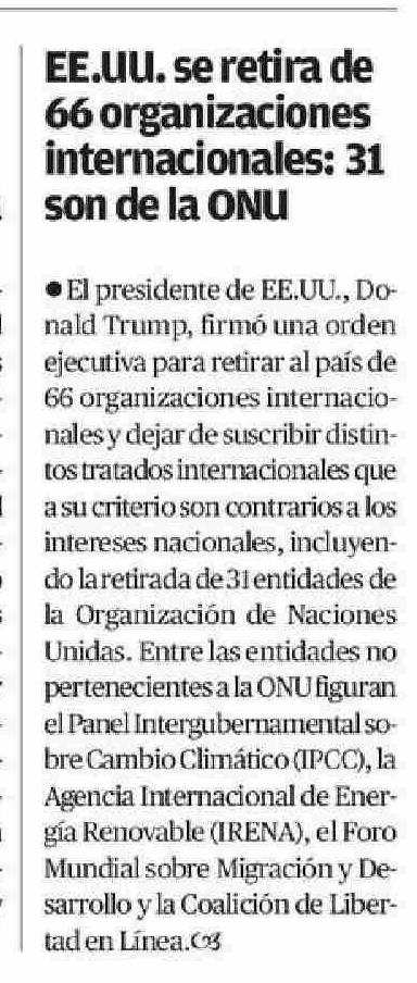 Título: EE.UU. se retira de 66 organizaciones internacionales: 31 son de la ONU