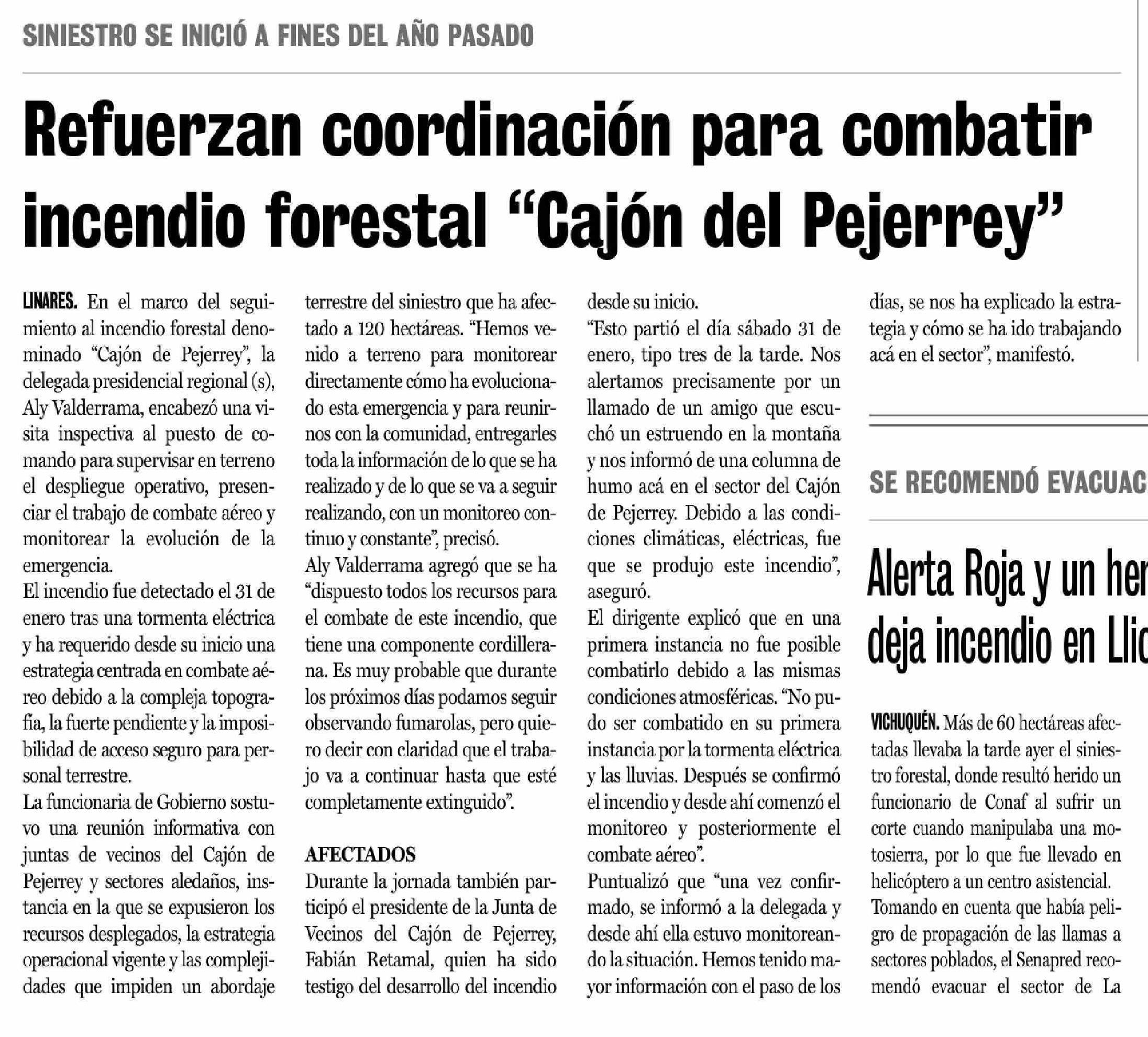 Título: Refuerzan coordinación para combatir incendio forestal "Cajón del Pejerrey"
