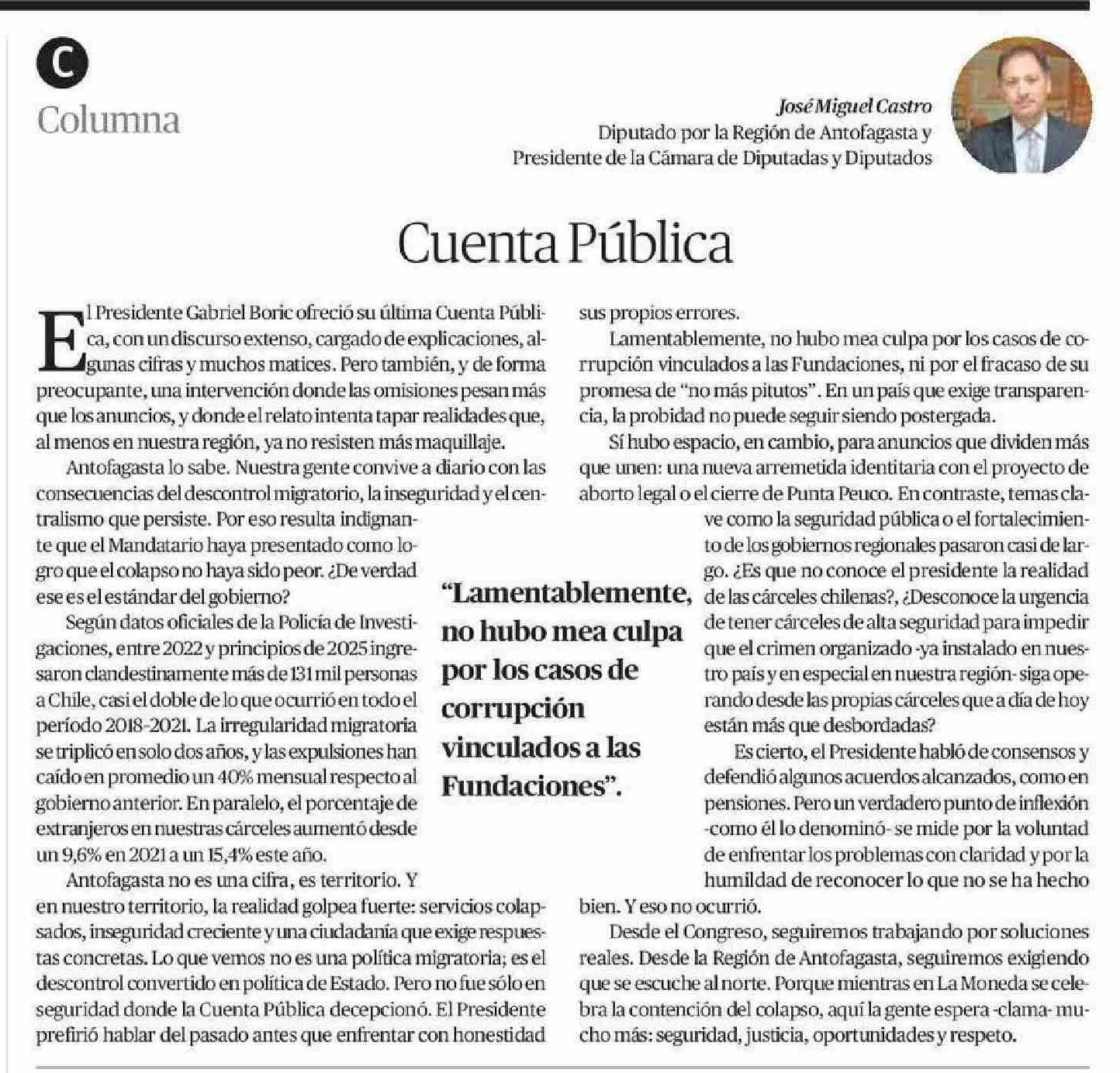 Columnas de Opinión: Cuenta Pública 07-06-2025 El Mercurio de Calama |