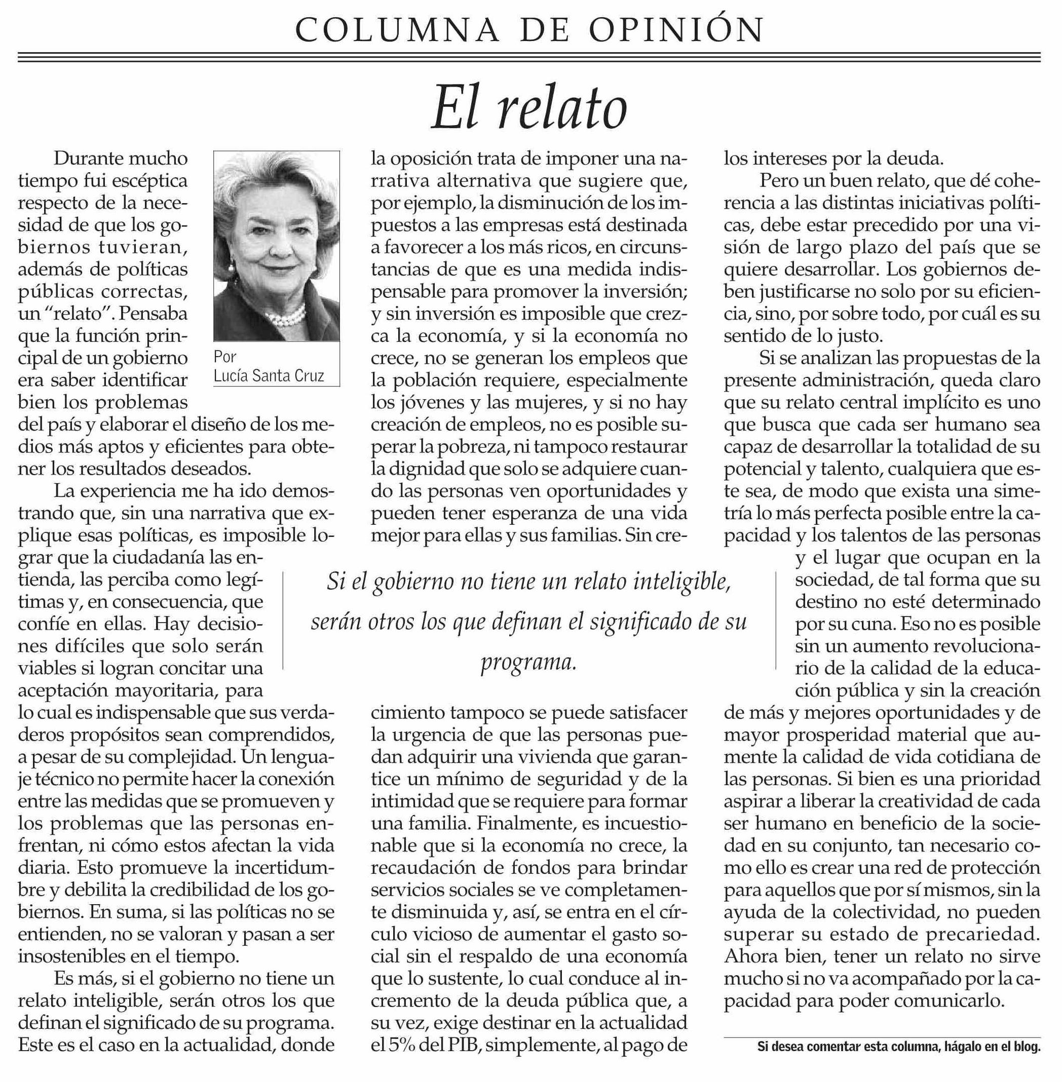 | Título: | Columnas de Opinión: El relato |