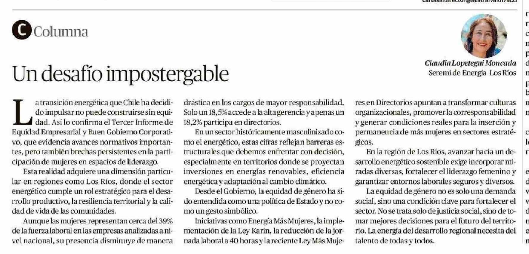 Fecha: 21-01-2026 Sector: Columnas de Opinión Región: Región de Los Ríos