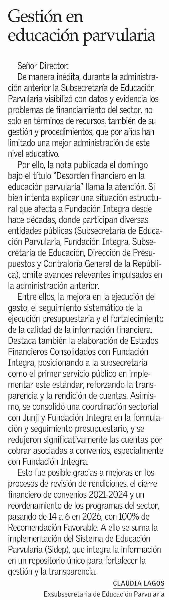 Cartas: Gestión en educación parvularia