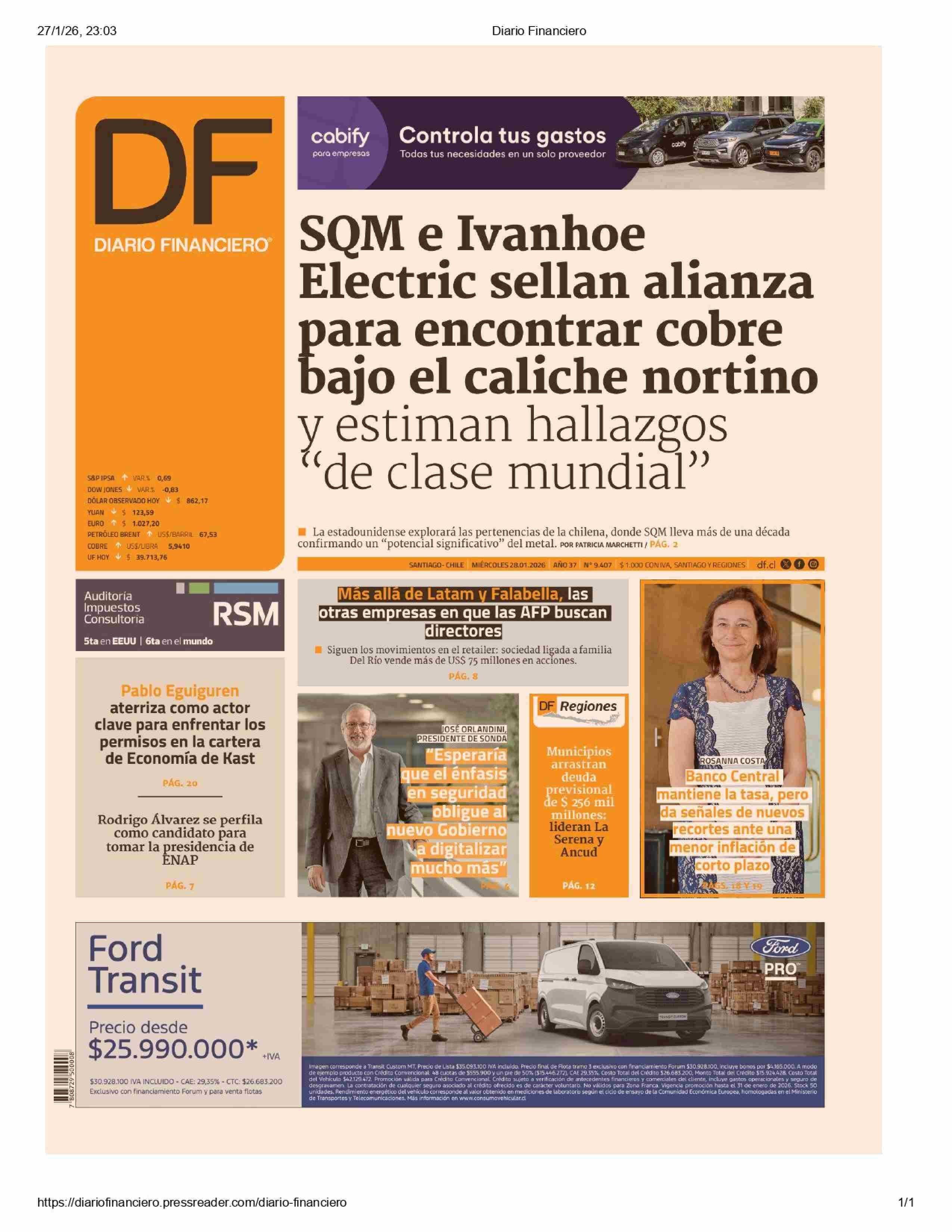 PORTADA DIARIO FINANCIERO CHILE 28-01-2026 Diario Financiero |