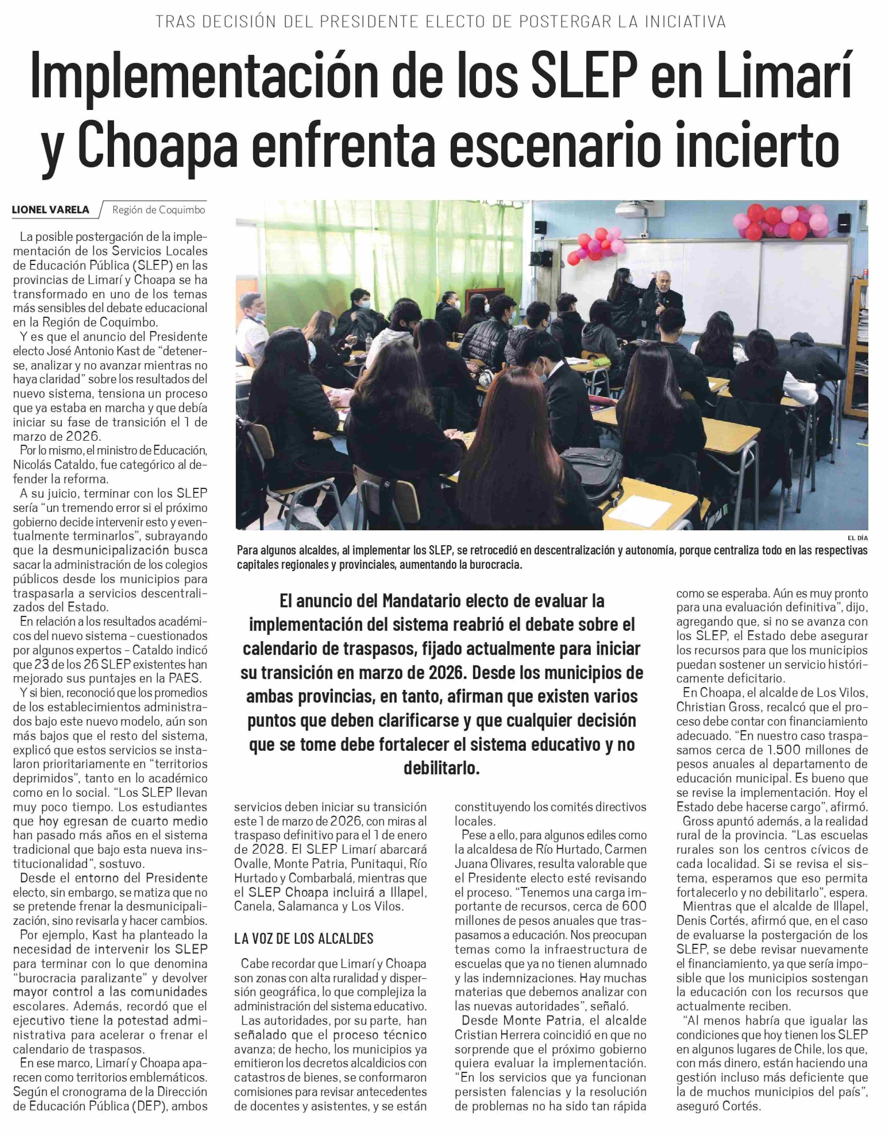 Título: Implementación de los SLEP en Limarí y Choapa enfrenta escenario incierto