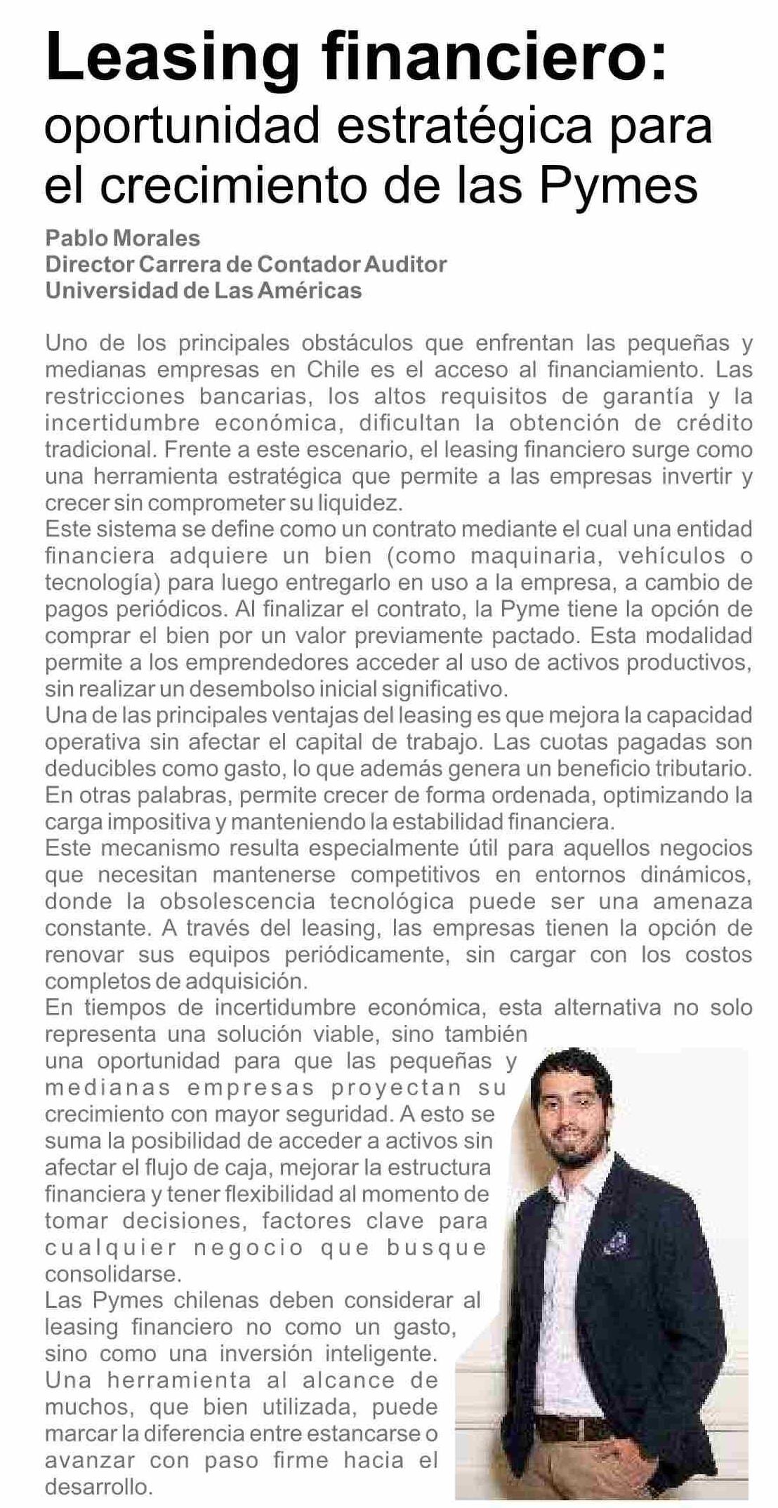 COLUMNAS DE OPINIÓN: Leasing financiero: oportunidad estratégica para el crecimiento de las Pymes 06-06-2025 El Labrador |