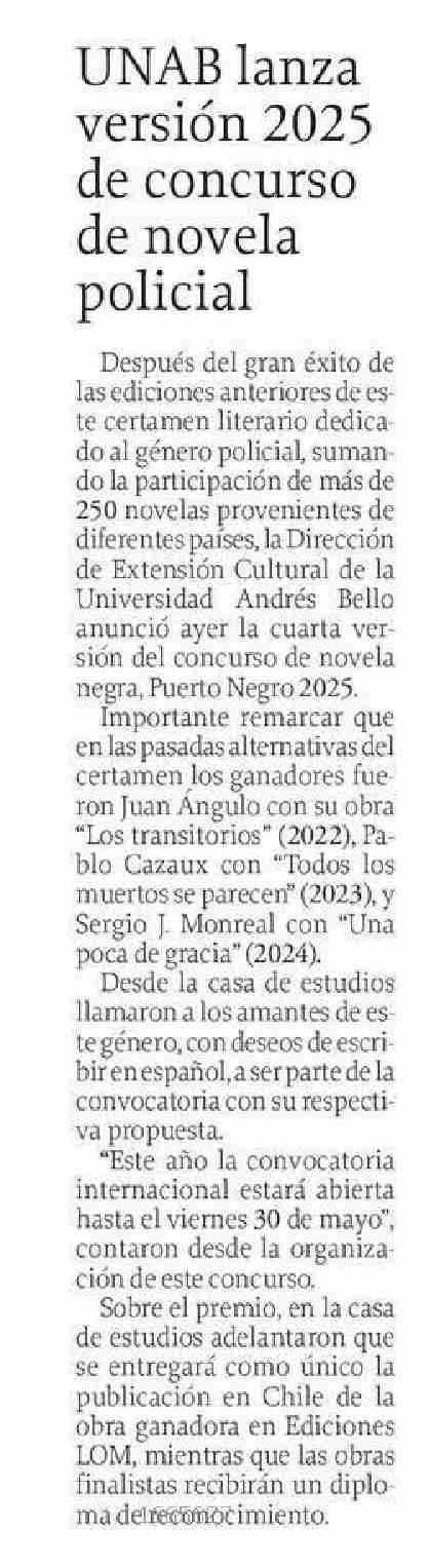 Título: UNAB lanza versión 2025 de concurso de novela policial
