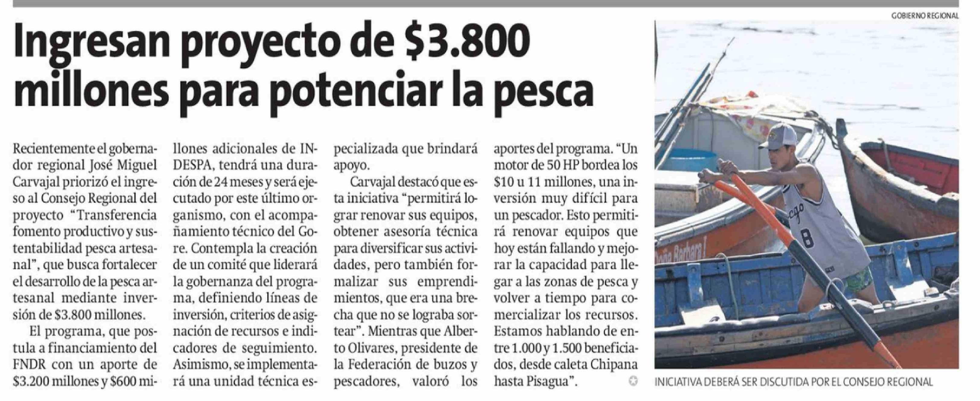 Ingresan proyecto de $3.800 millones para potenciar la pesca 18-04-2026 La Estrella de Iquique |