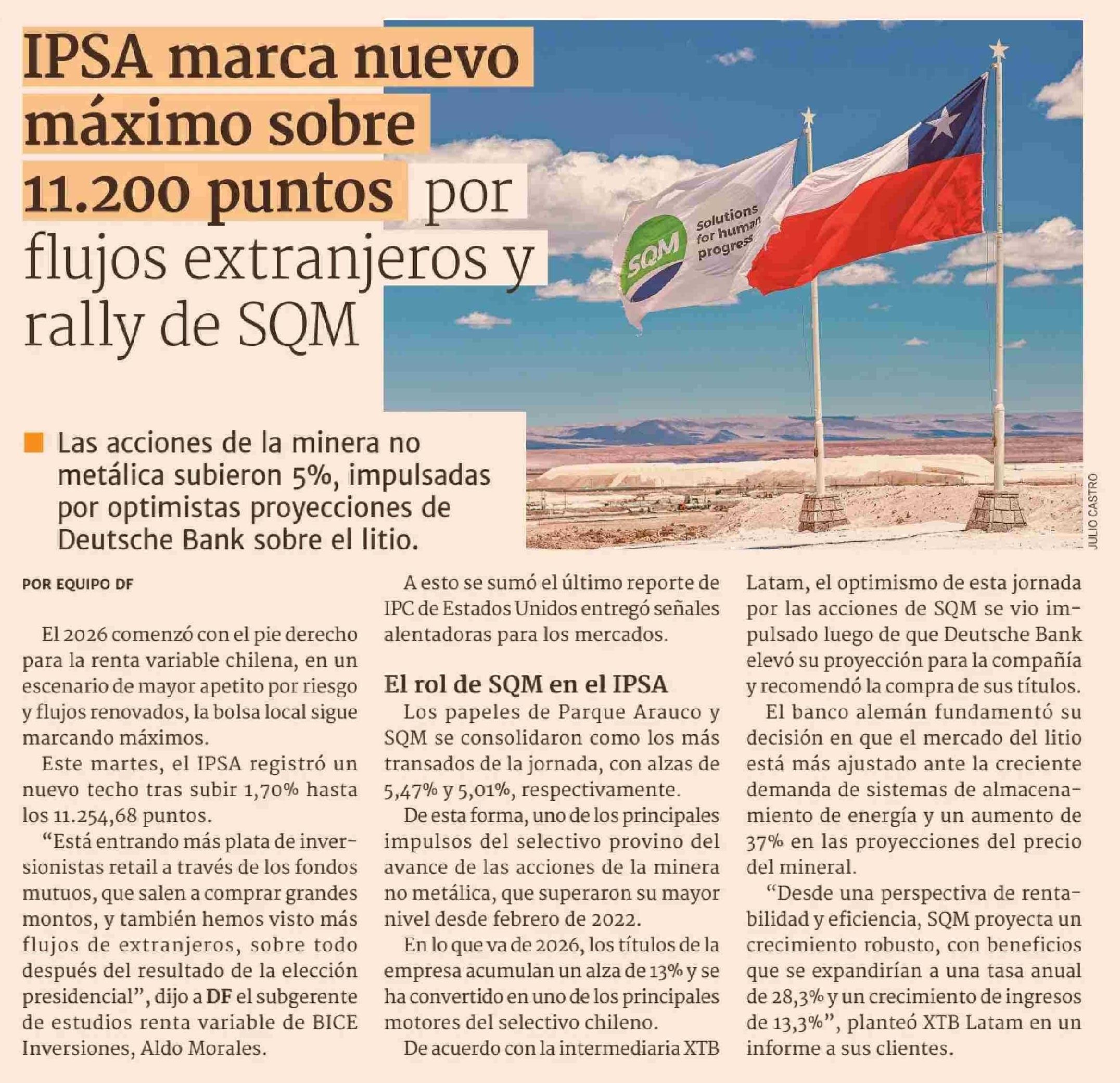 Título: IPSA marca nuevo máximo sobre 11.200 puntos por flujos extranjeros y rally de SQM