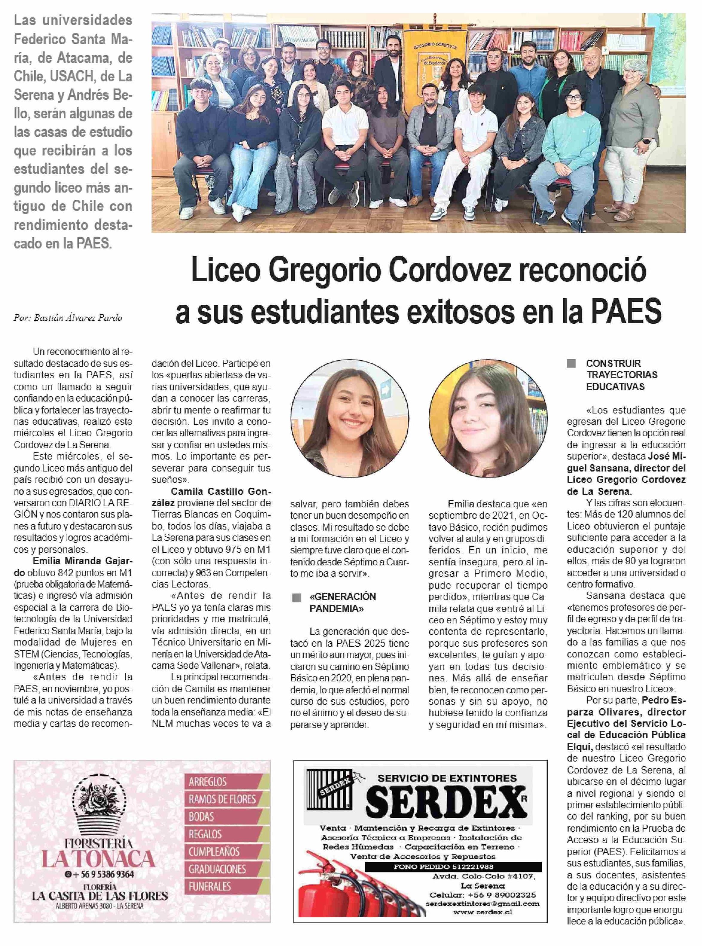 Título: Liceo Gregorio Cordovez reconoció a sus estudiantes exitosos en la PAES