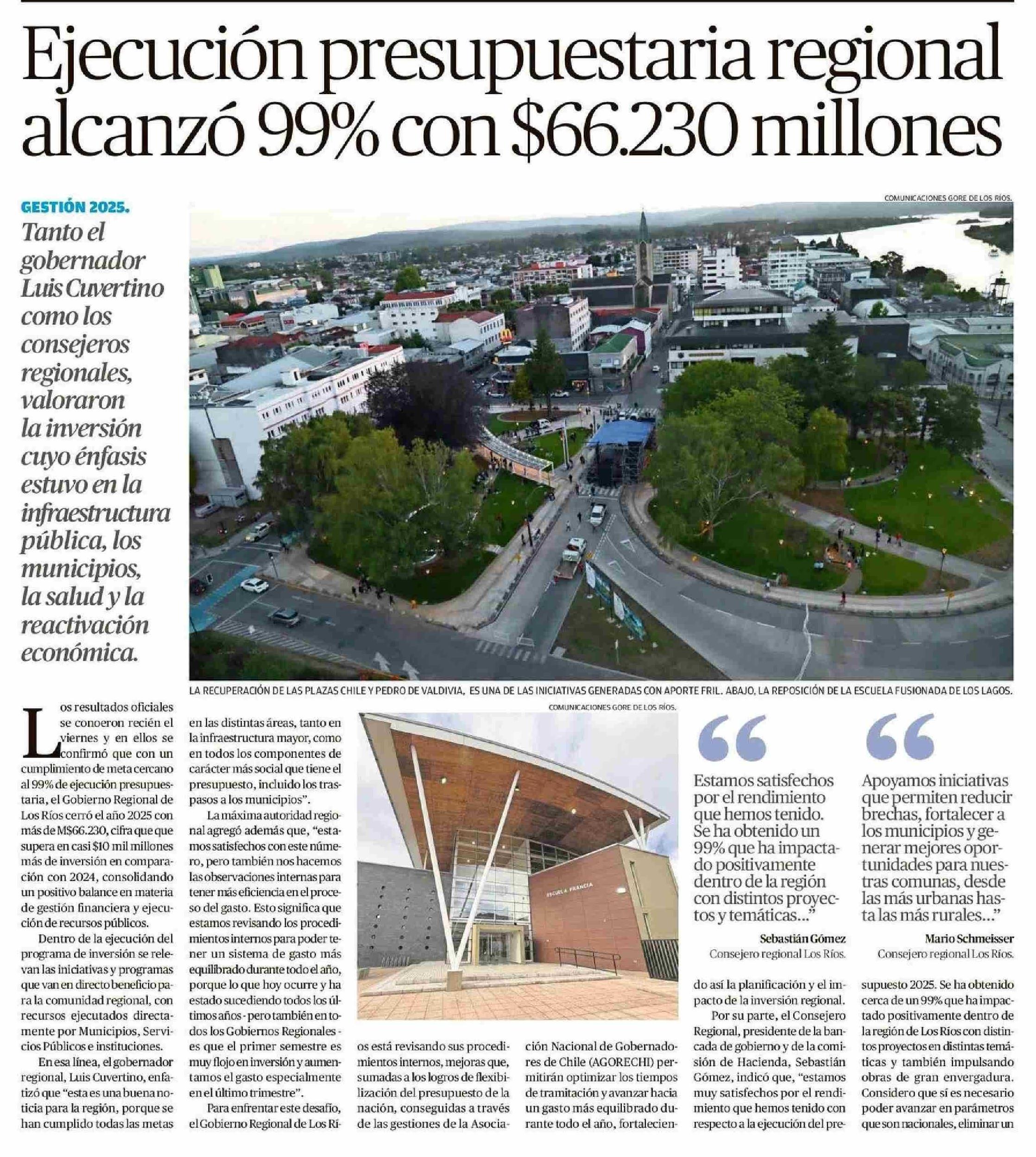 Título: Ejecución presupuestaria regional alcanzó 99% con $66.230 millones