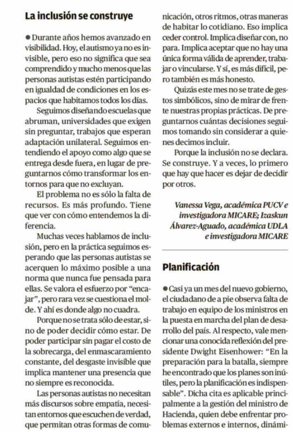 CARTAS: La inclusión se construye 05-04-2026 El Mercurio de Valparaíso |