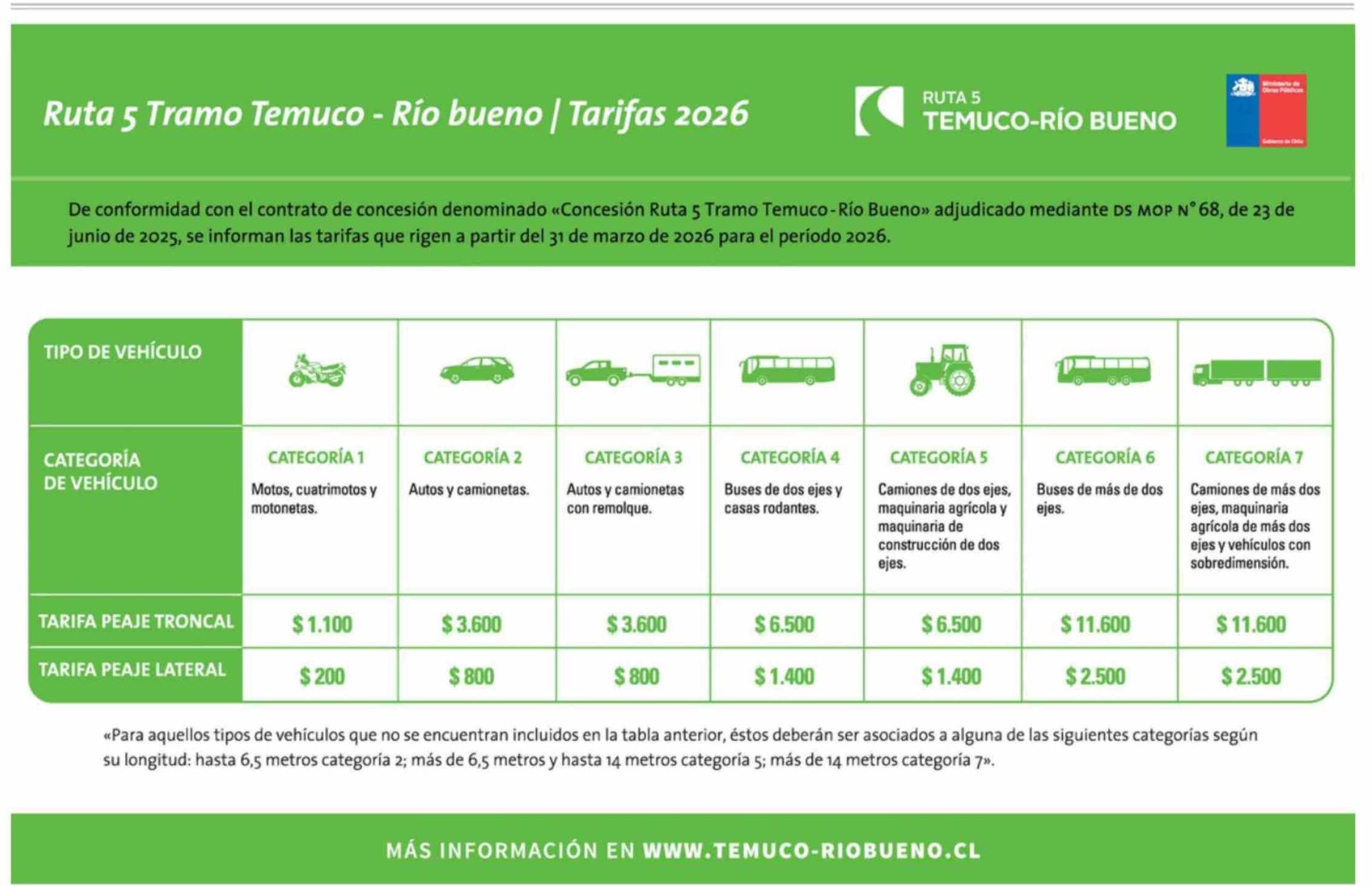 | Título: | Aviso Autopistas: Ruta 5 Tramo Temuco - Río bueno | Tarifas 2026 |