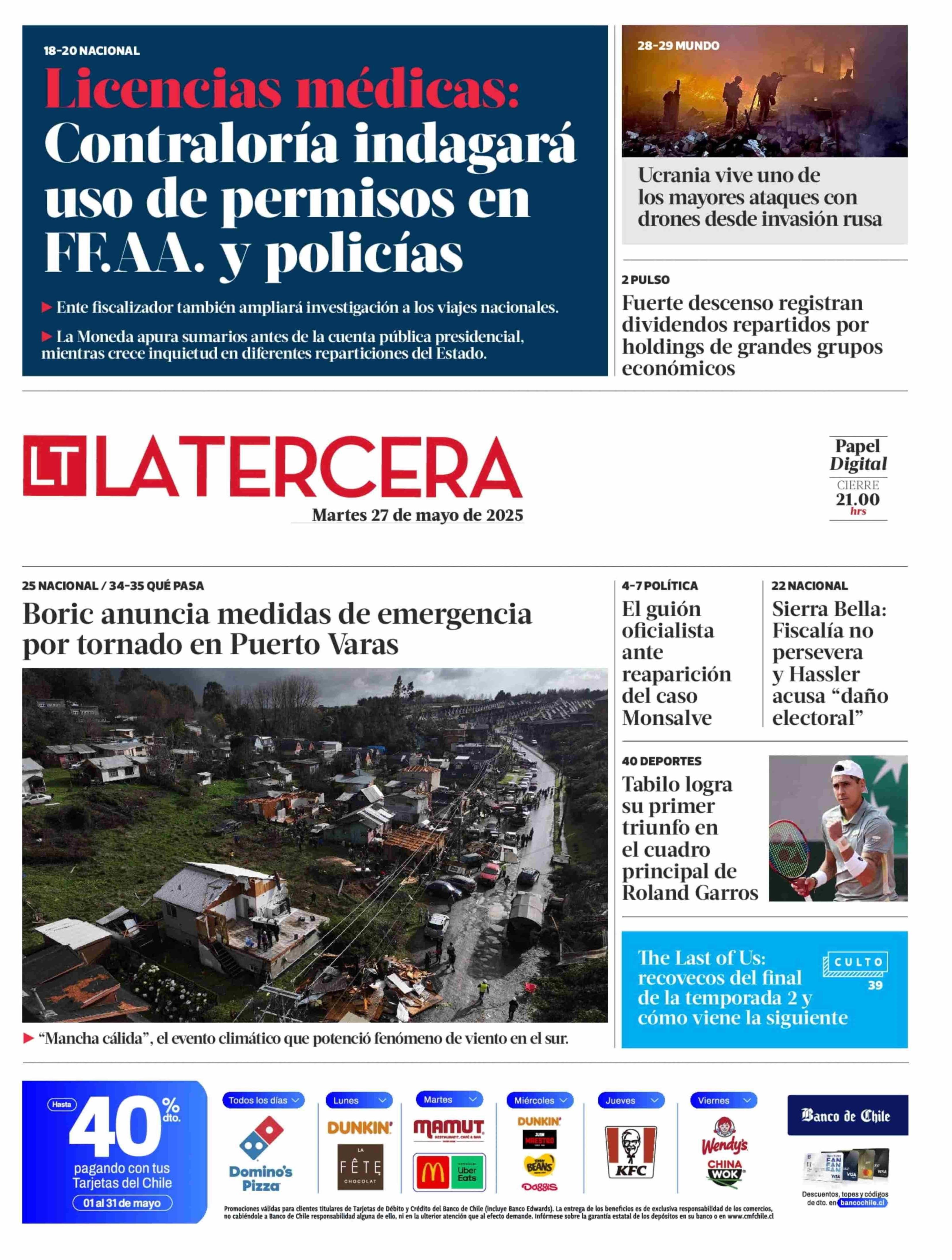 Fecha: 27-05-2025 Sector: Portada Región: Región Metropolitana de Santiago