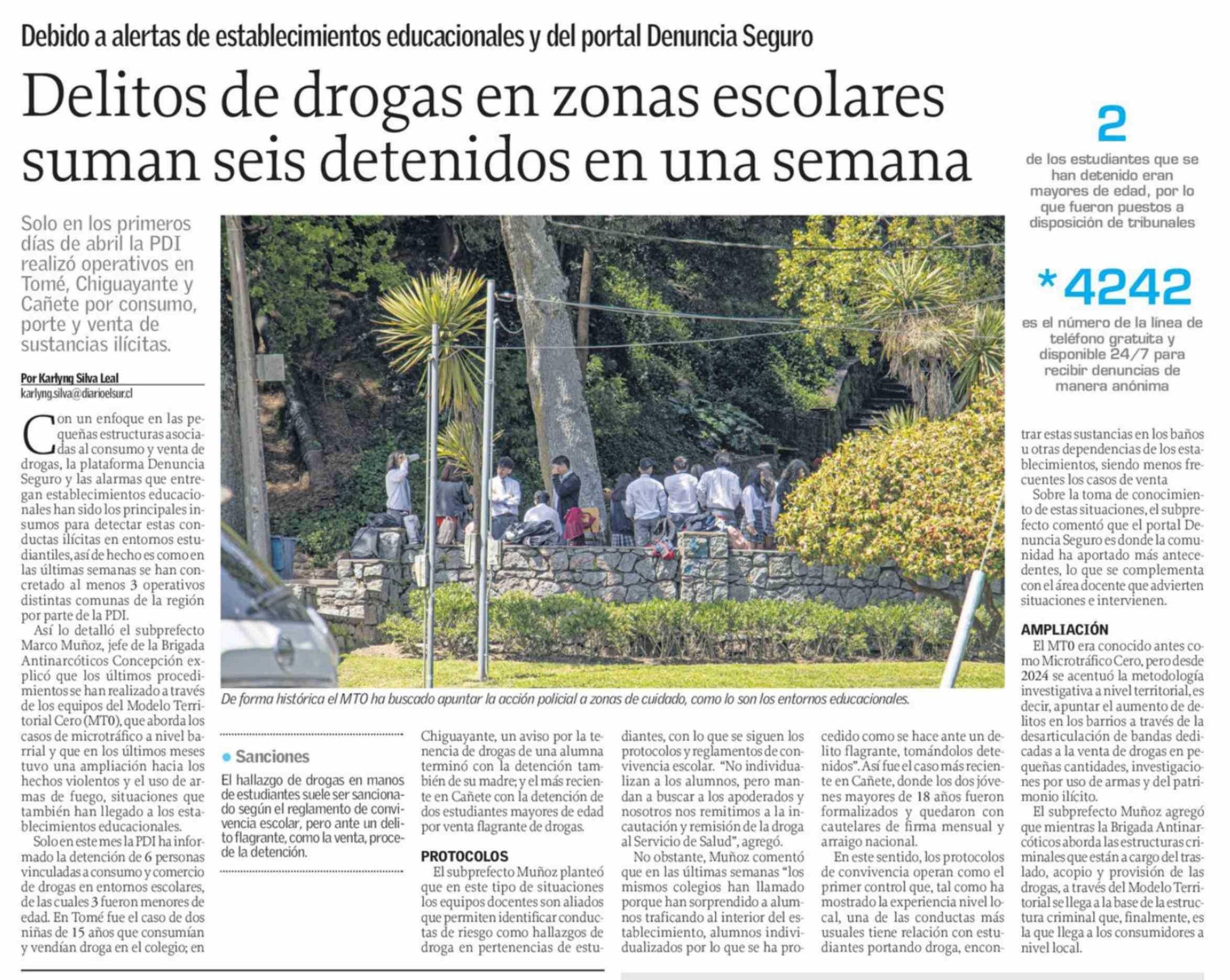 Delitos de drogas en zonas escolares suman seis detenidos en una semana 09-04-2026 El Sur |