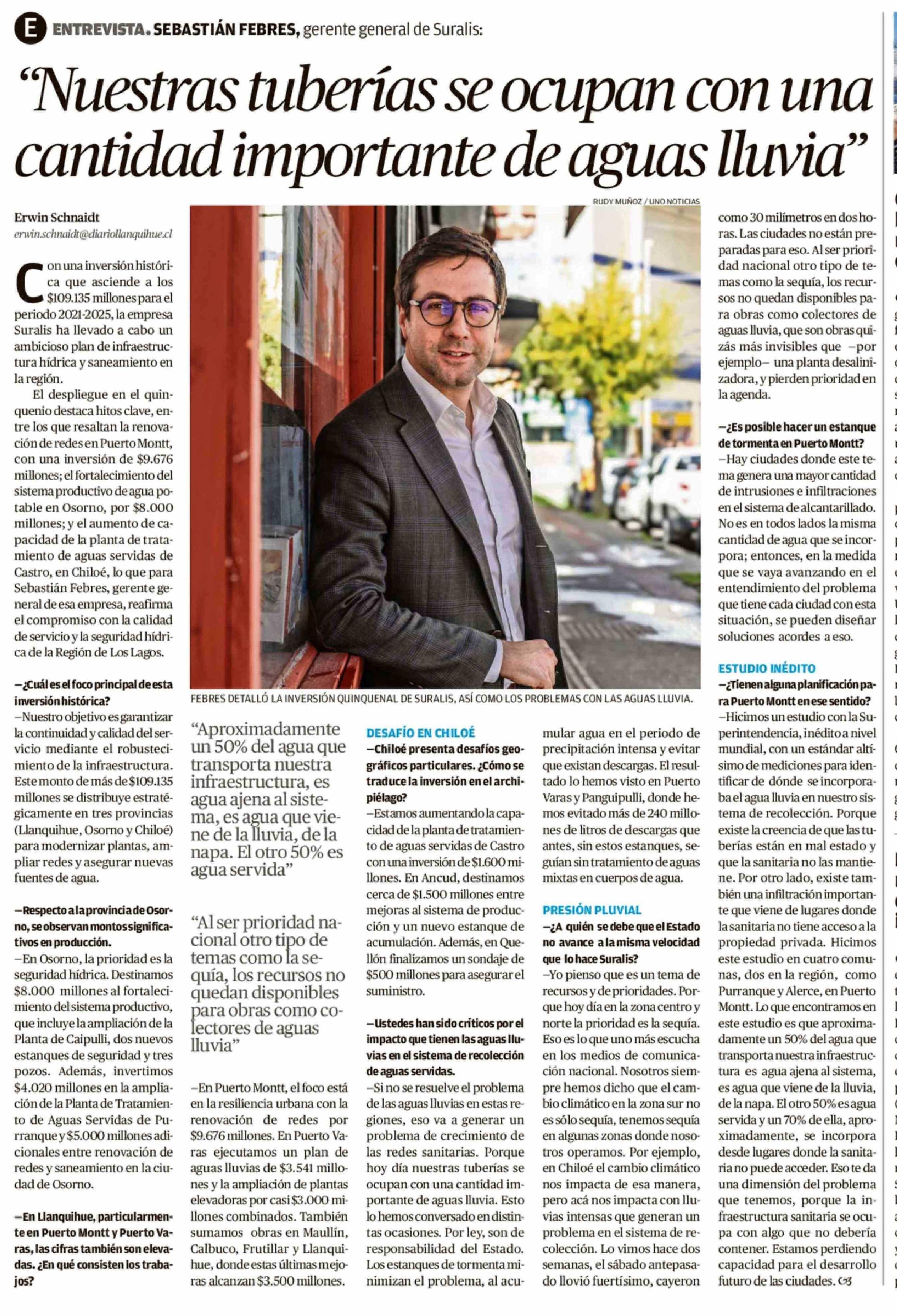 Título: "Nuestras tuberías se ocupan con una cantidad importante de aguas lluvia"