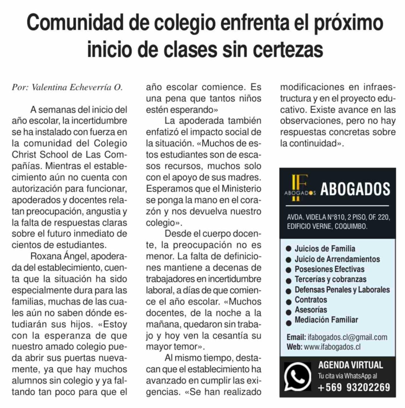 Título: Comunidad de colegio enfrenta el próximo inicio de clases sin certezas