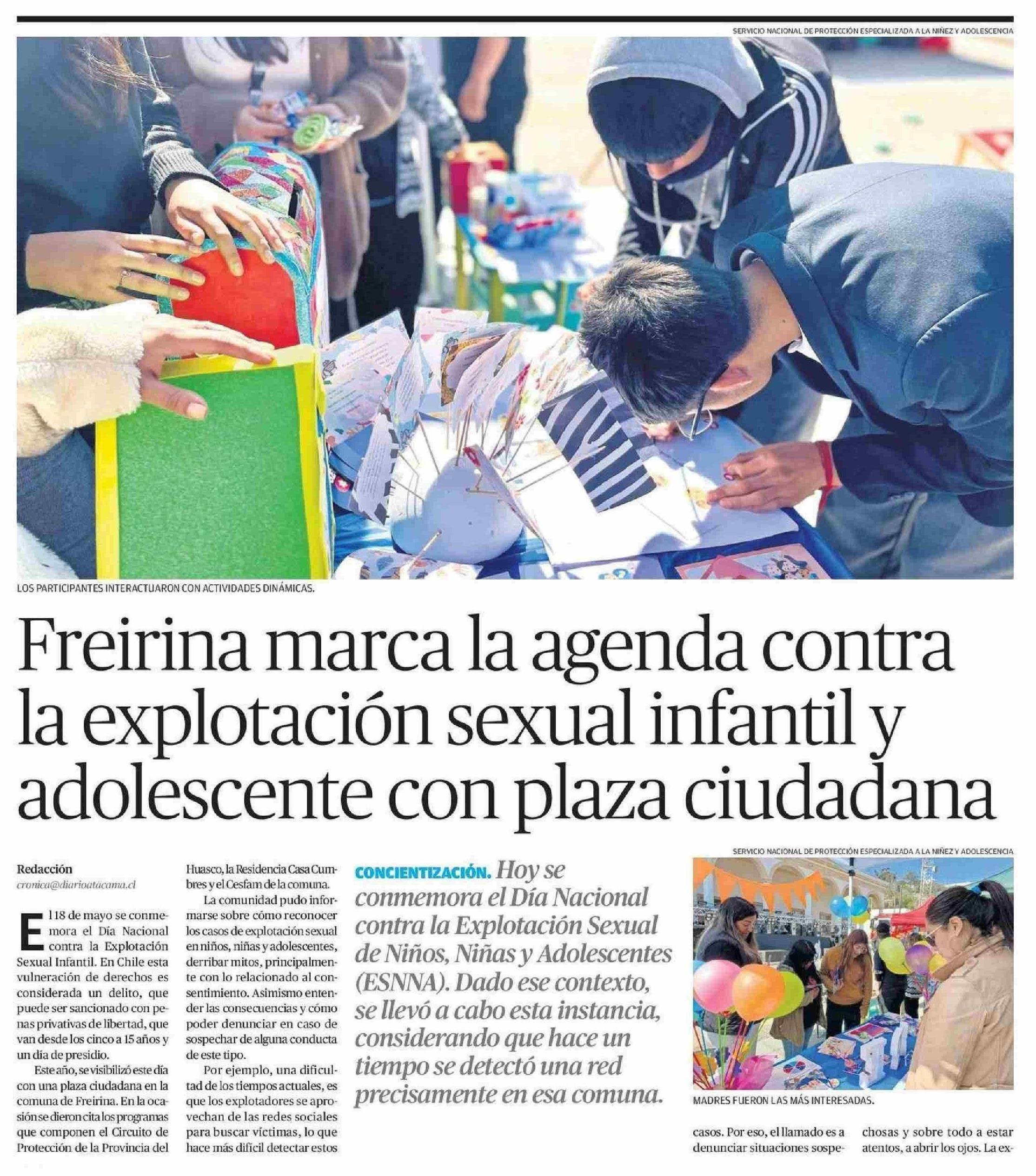 | Título: | Freirina marca la agenda contra la explotación sexual infantil y adolescente con plaza ciudadana |