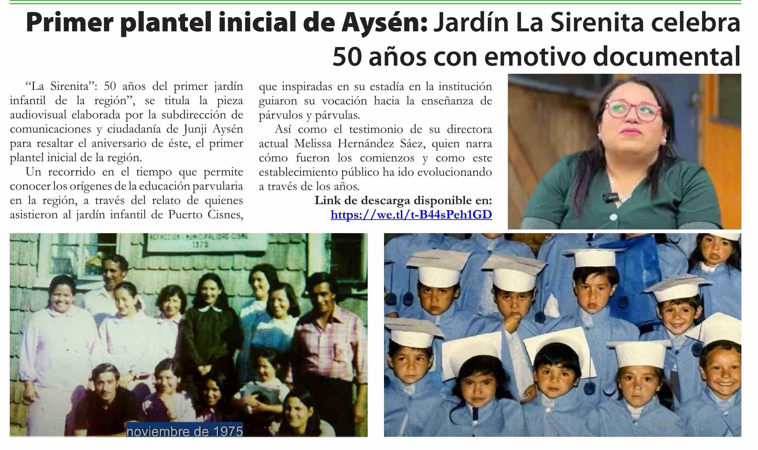| Título: | Primer plantel inicial de Aysén: Jardín La Sirenita celebra 50 años con emotivo documental |