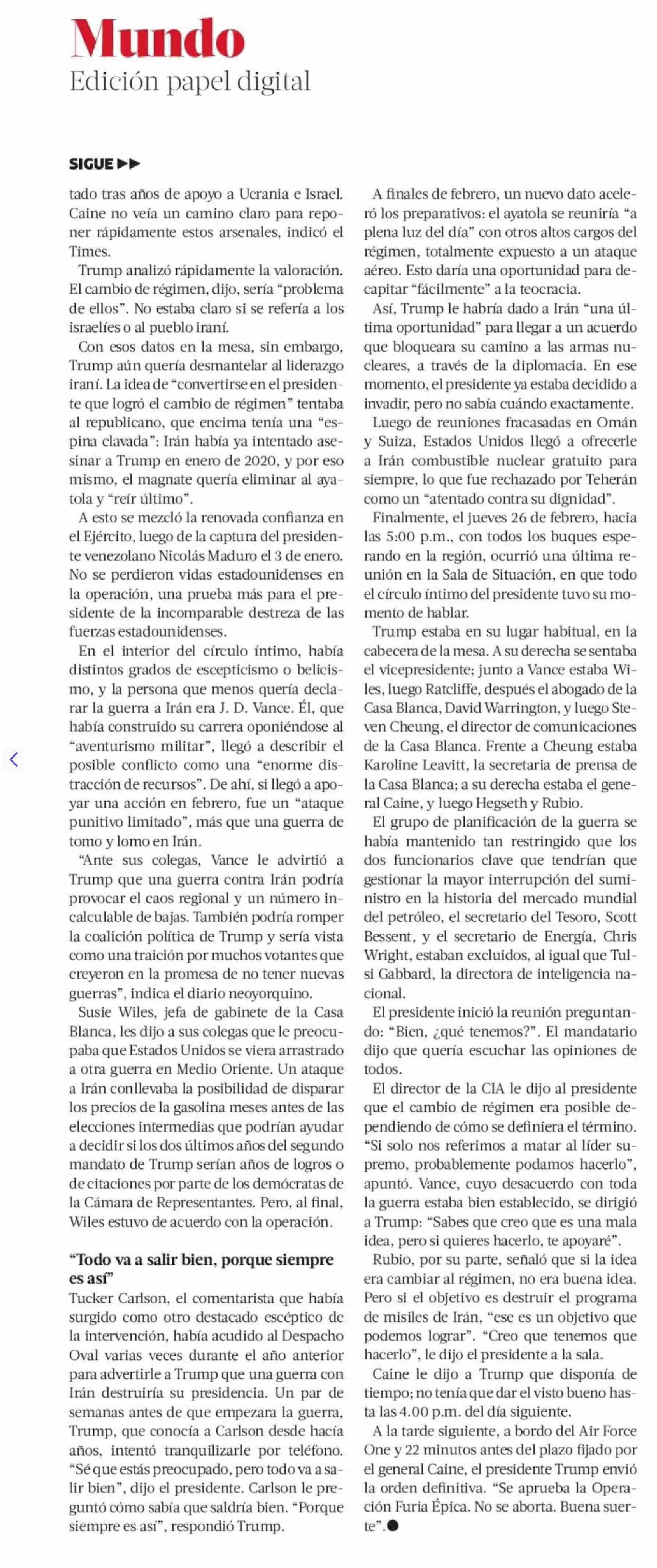 | Título: | "Todo va a salir bien": las revelaciones del New York Times sobre cómo Trump se decidió a ir a la guerra con Irán |