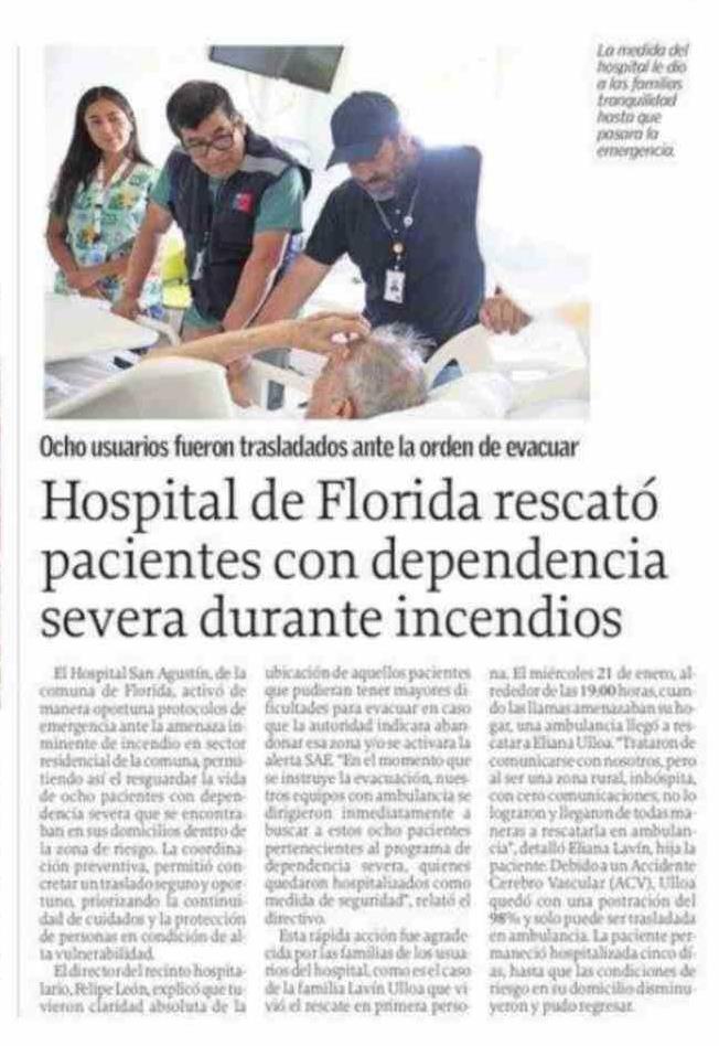 Hospital de Florida rescató pacientes con dependencia severa durante incendios 04-02-2026 El Sur |