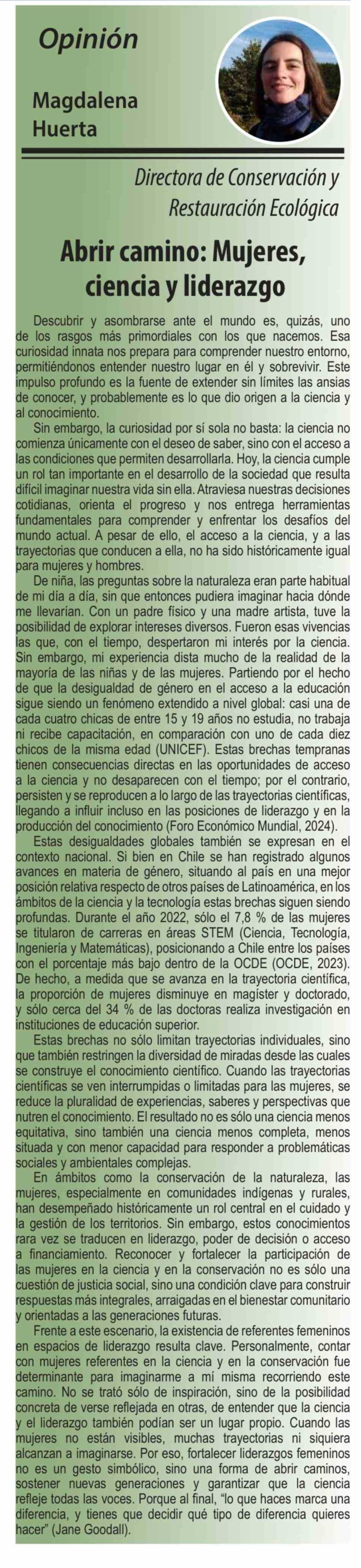 Columnas de Opinión: Abrir camino: Mujeres, ciencia y liderazgo 12-02-2026 El Divisadero |