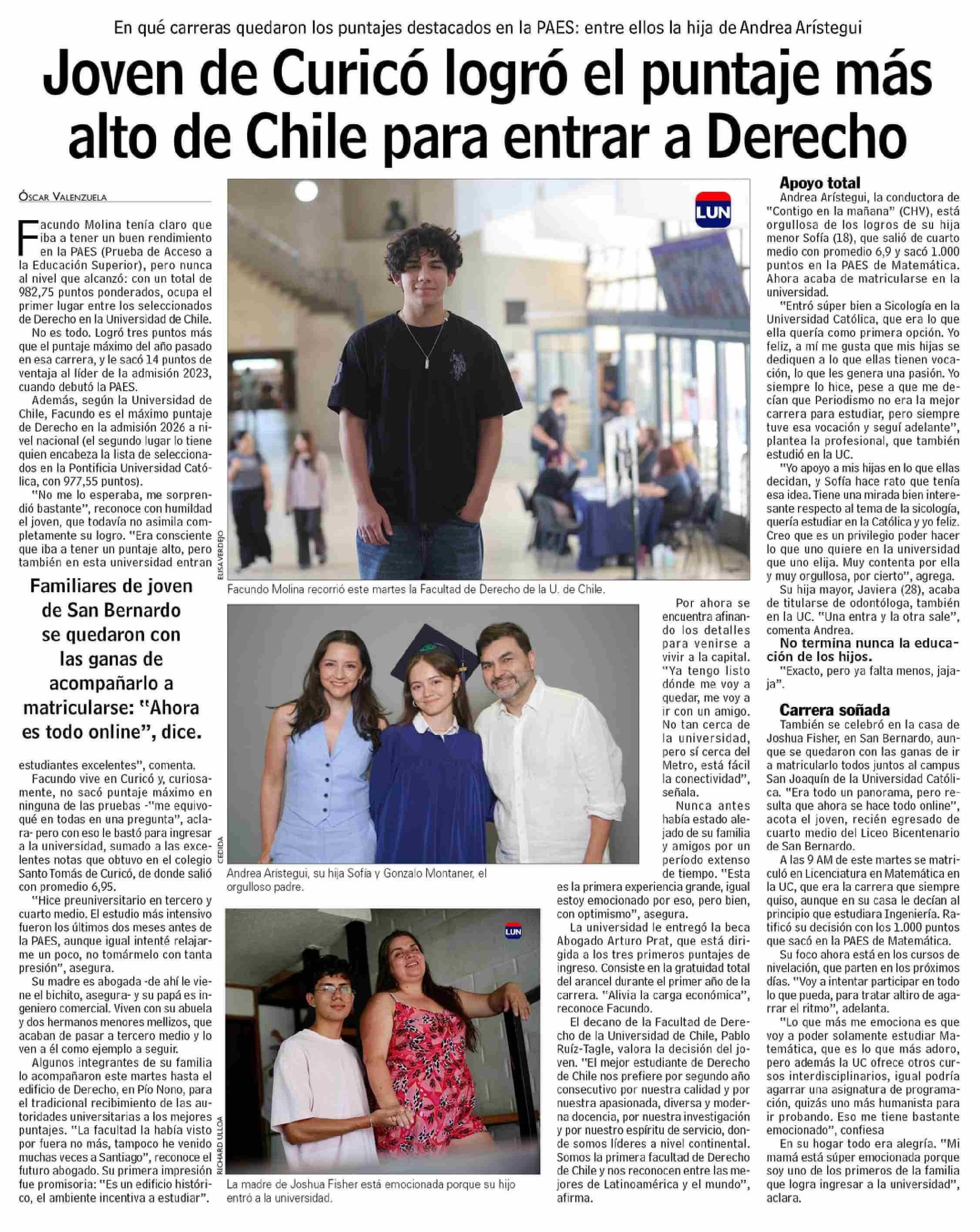 Título: Joven de Curicó logró el puntaje más alto de Chile para entrar a Derecho