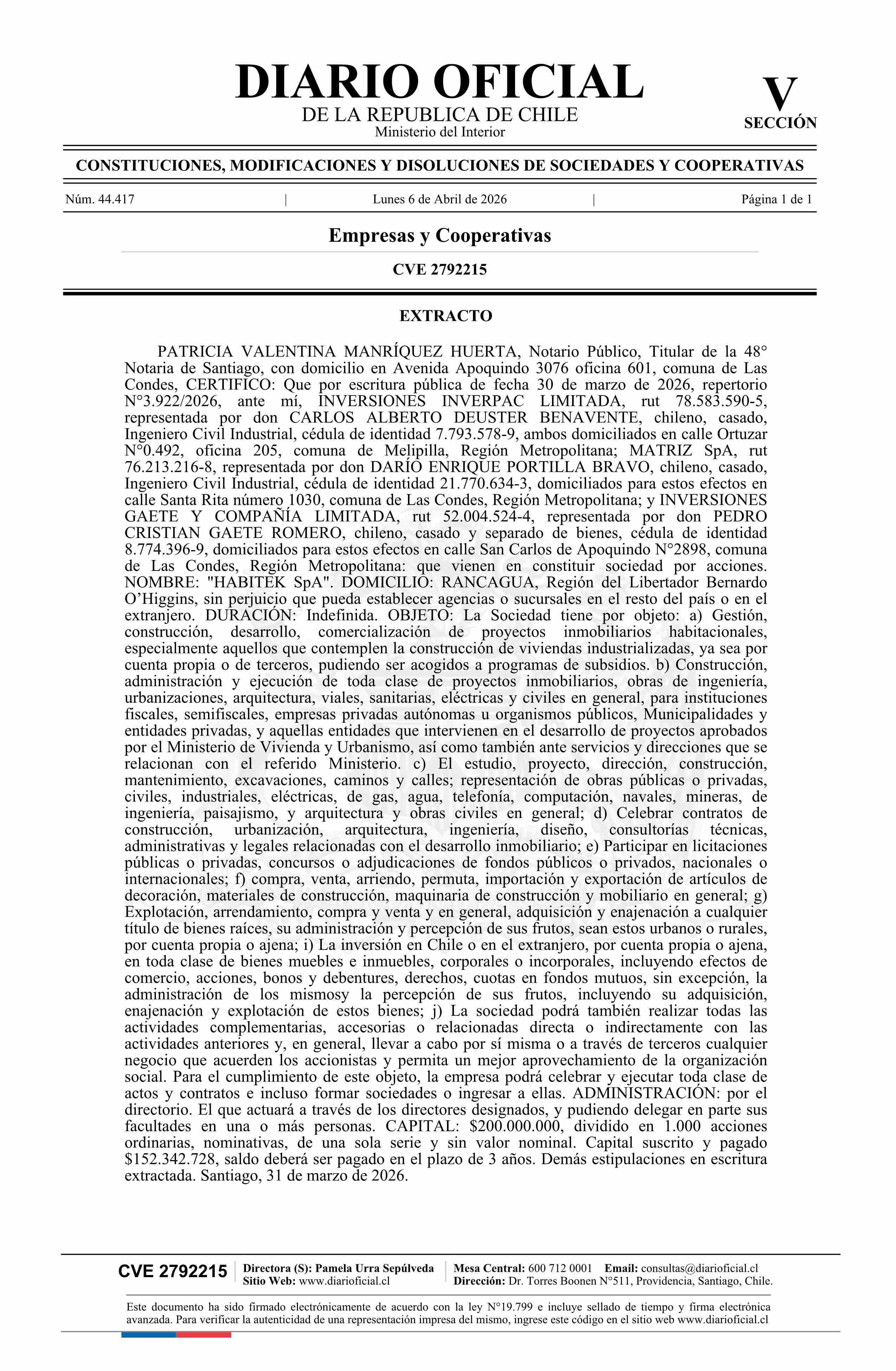 Título: HABITEK SpA