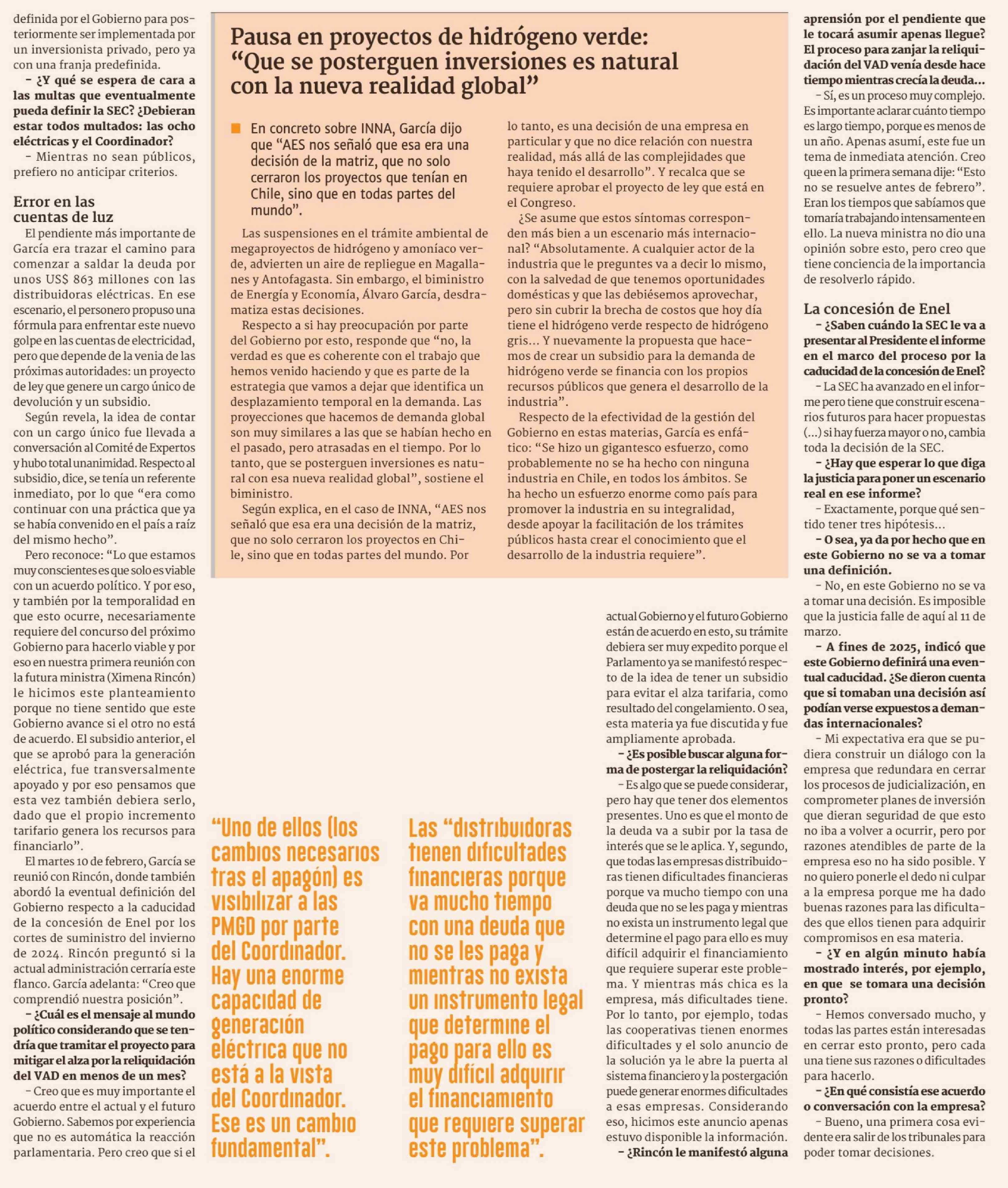 A un año del apagón: "Fortalecer la resiliencia del sistema requiere de intervenciones en muchos ámbitos" 18-02-2026 Diario Financiero |