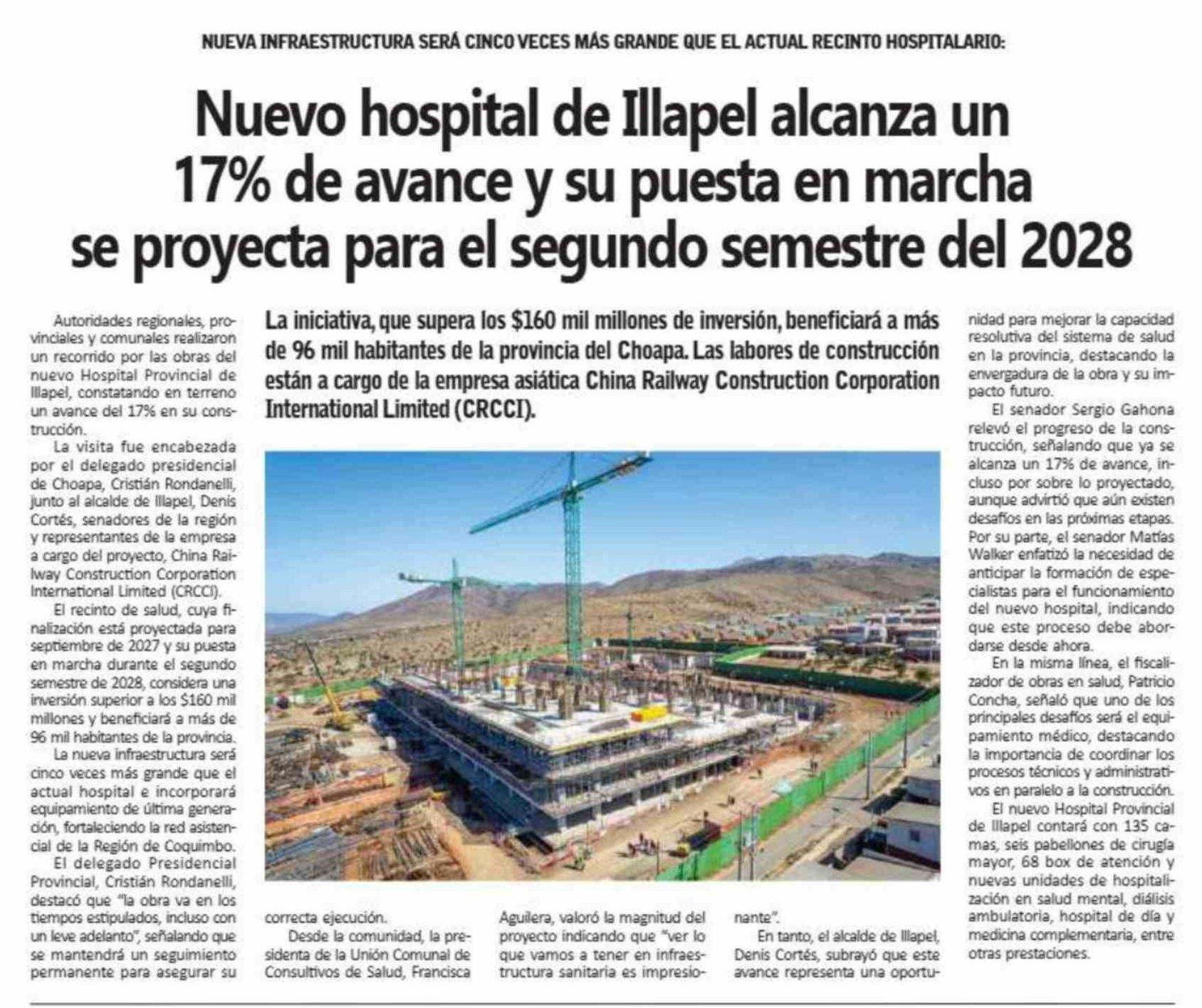 Título: Nuevo hospital de Illapel alcanza un 17% de avance y su puesta en marcha se proyecta para el segundo semestre del 2028