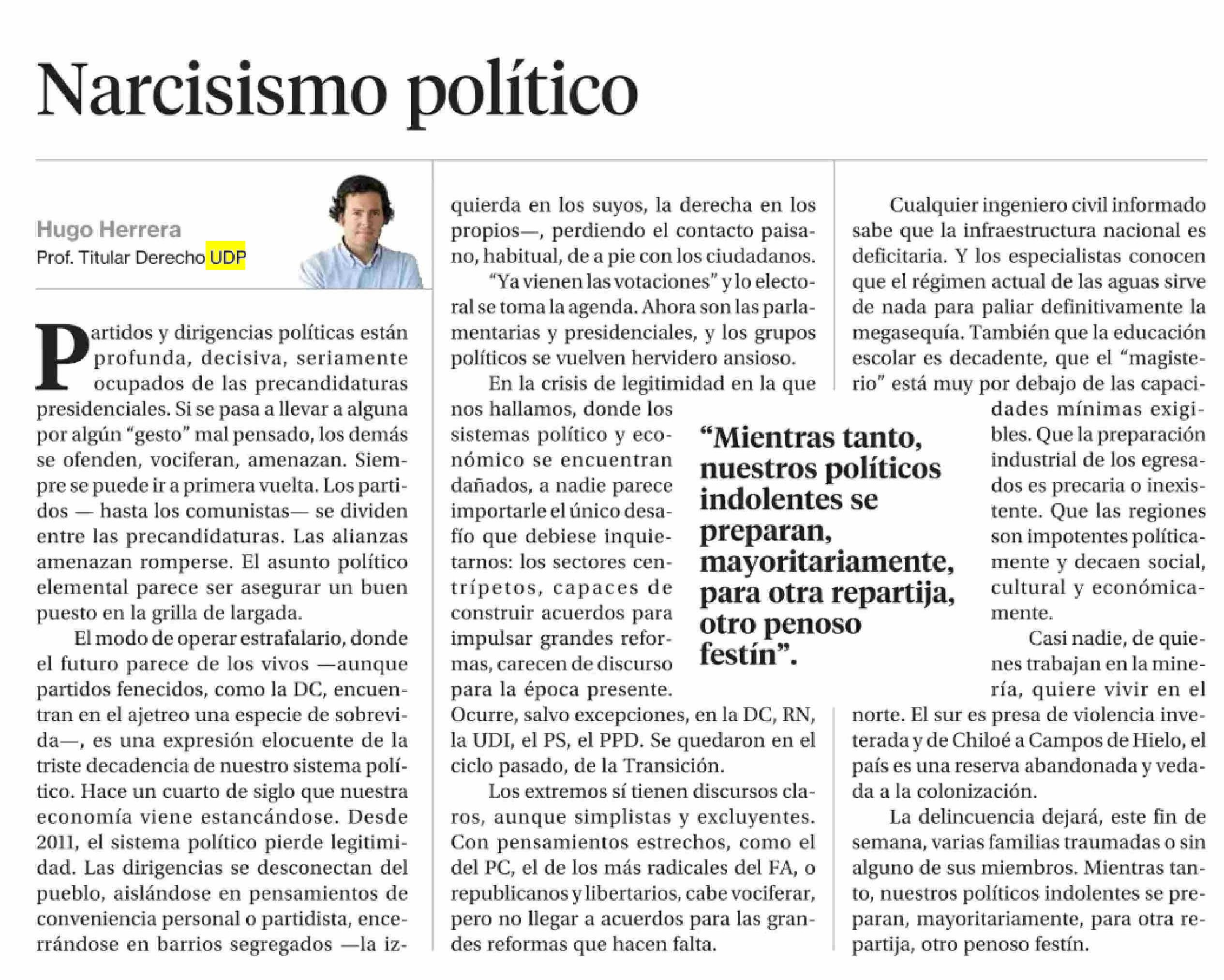 COLUMNAS DE OPINIÓN: Narcisismo político 08-04-2025 La Segunda |