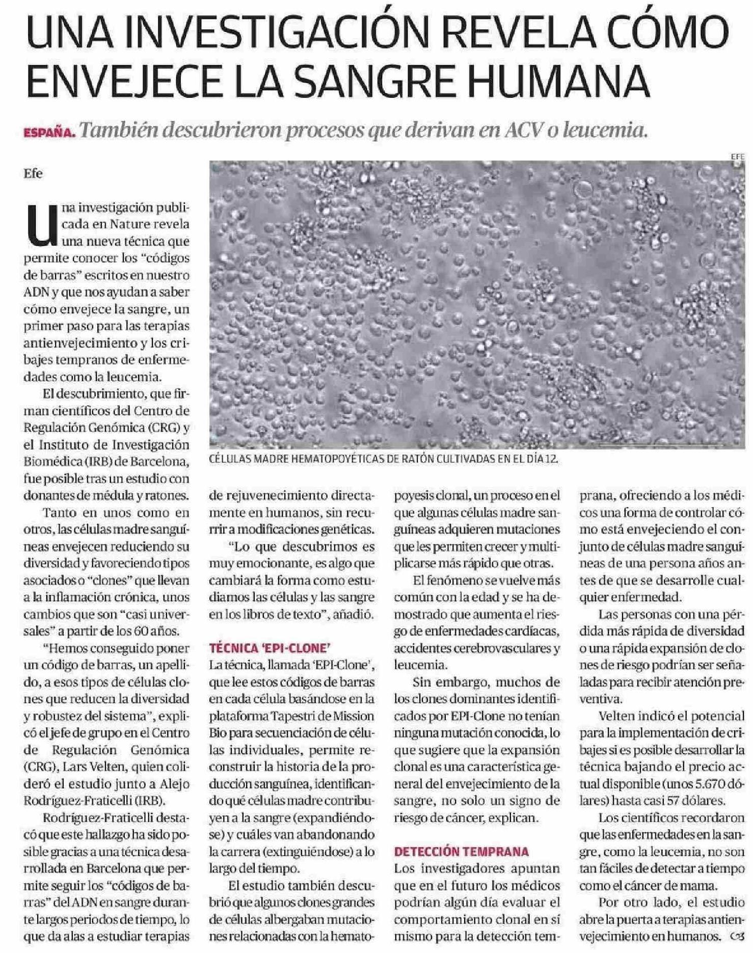 Título: UNA INVESTIGACIÓN REVELA CÓMO ENVEJECE LA SANGRE HUMANA