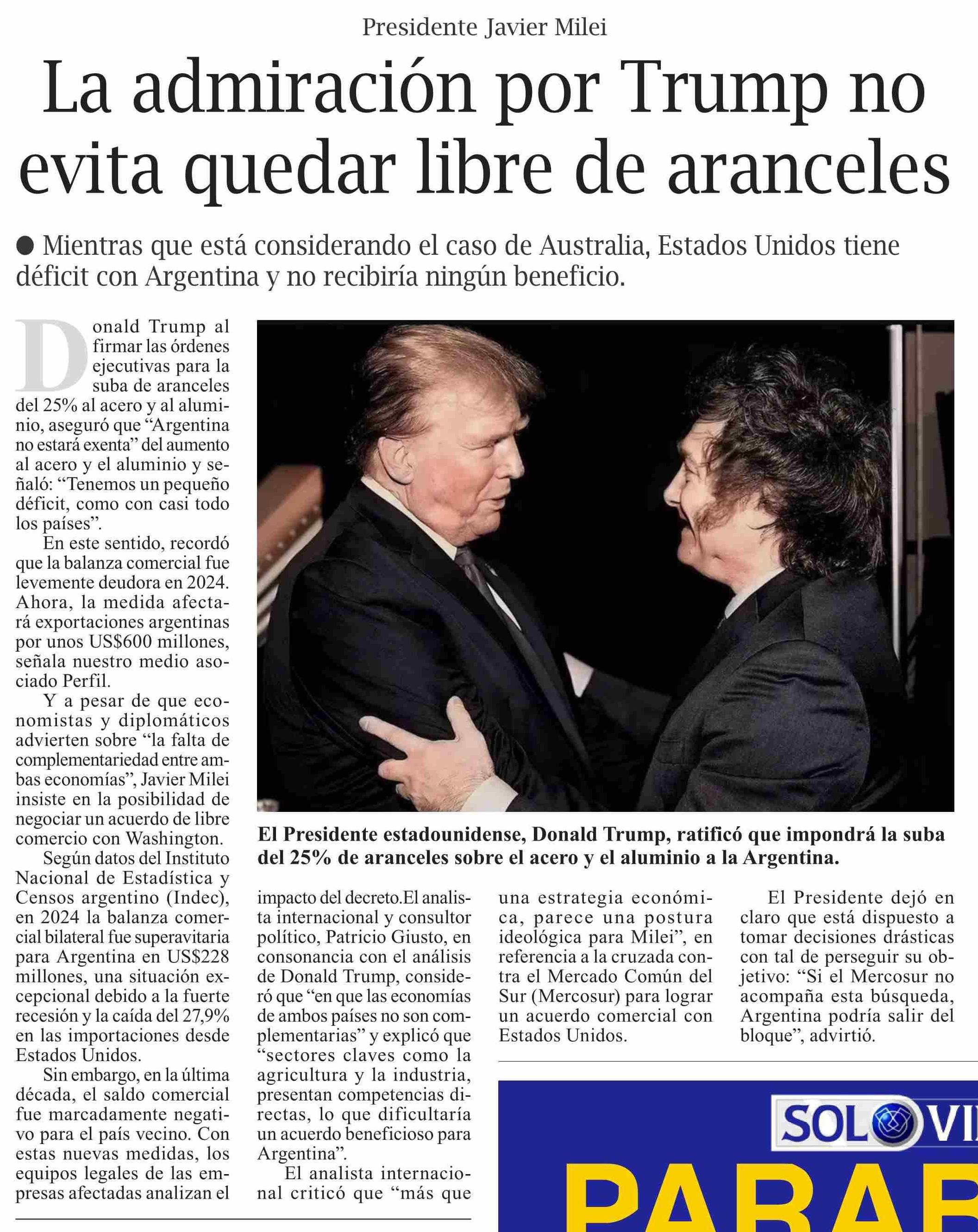 | Título: | La admiración por Trump no evita quedar libre de aranceles |
