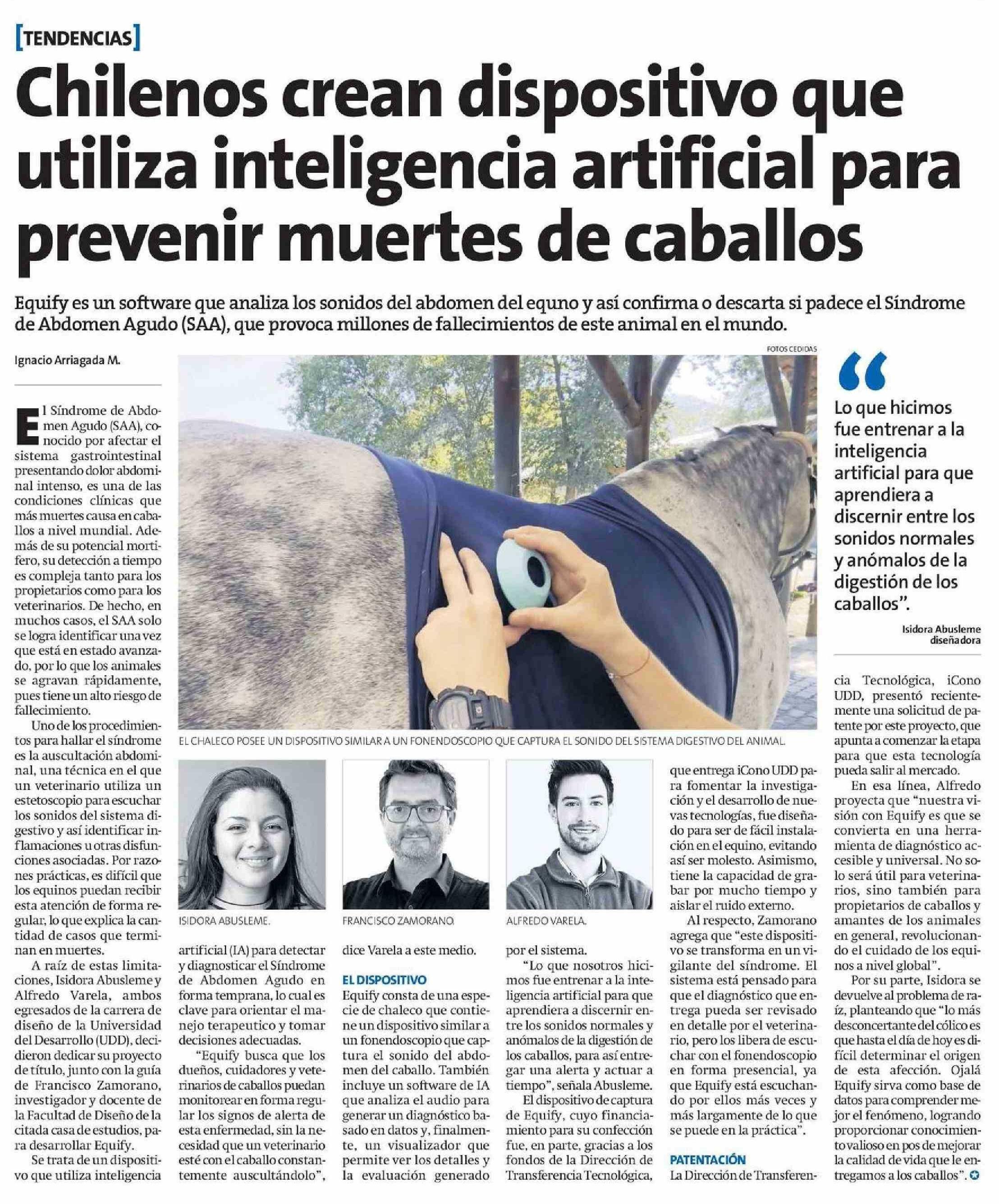 | Título: | Chilenos crean dispositivo que utiliza inteligencia artificial para prevenir muertes de caballos |