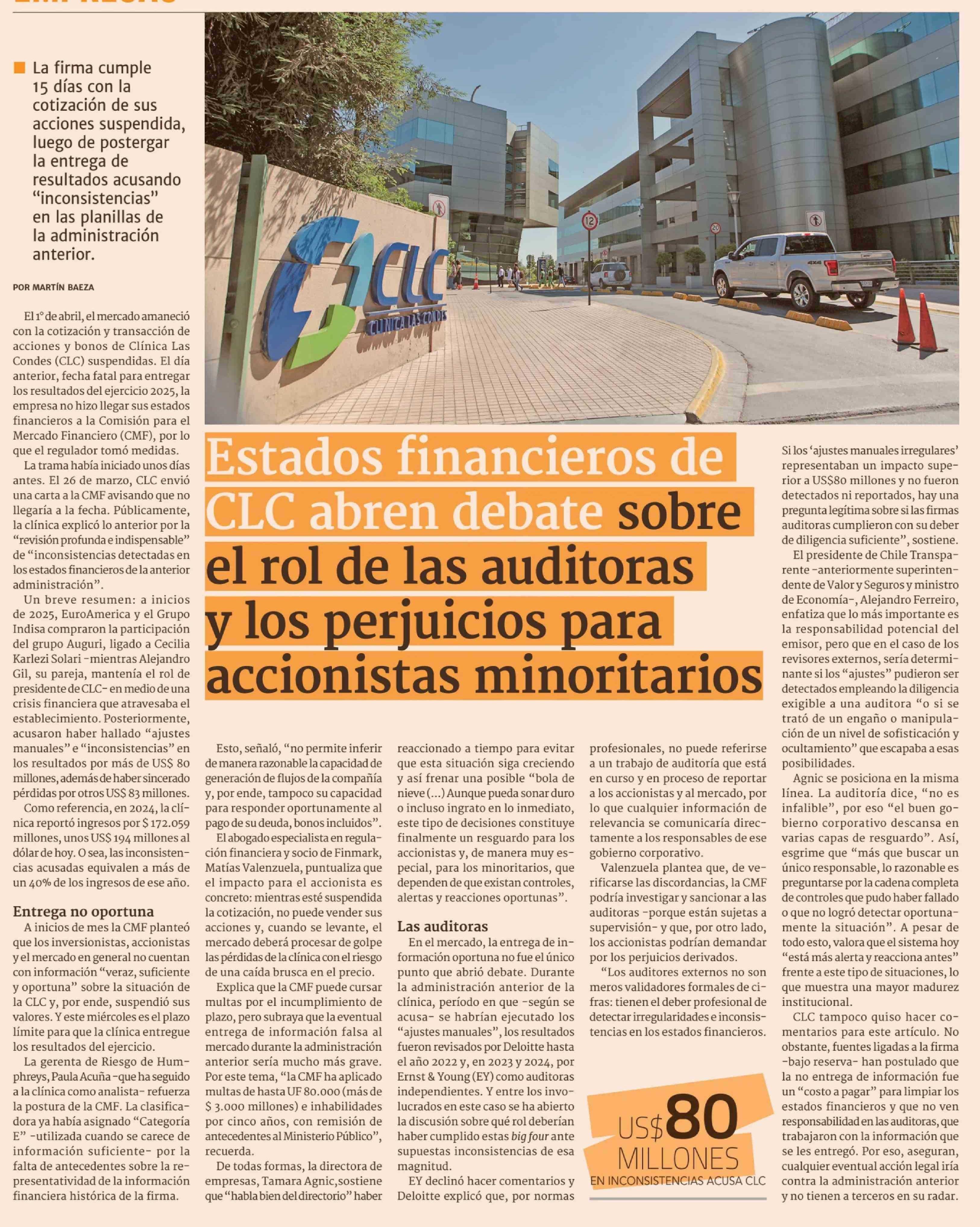 | Título: | Estados financieros de CLC abren debate sobre el rol de las auditoras y los perjuicios para accionistas minoritarios |