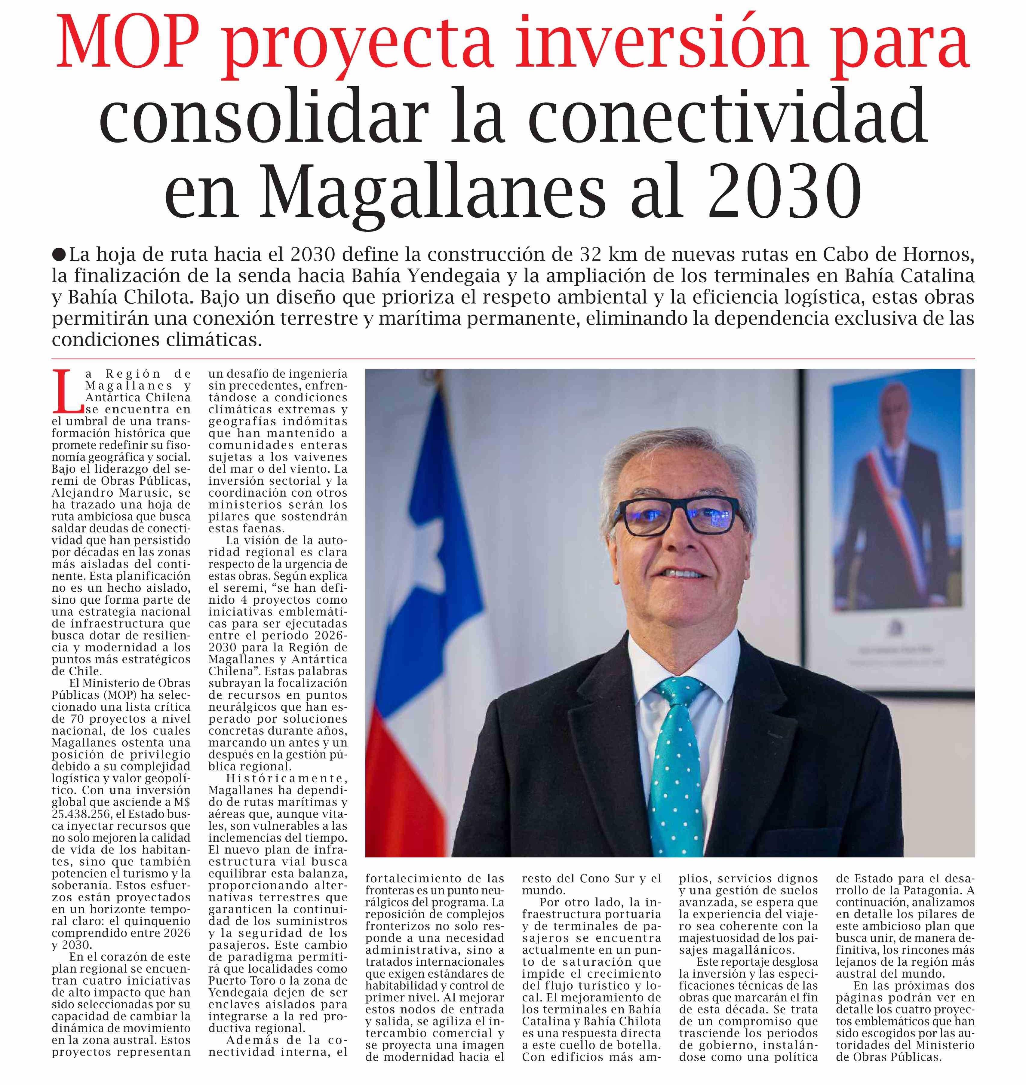 MOP proyecta inversión para consolidar la conectividad en Magallanes al 2030 26-04-2026 El Pingüino |