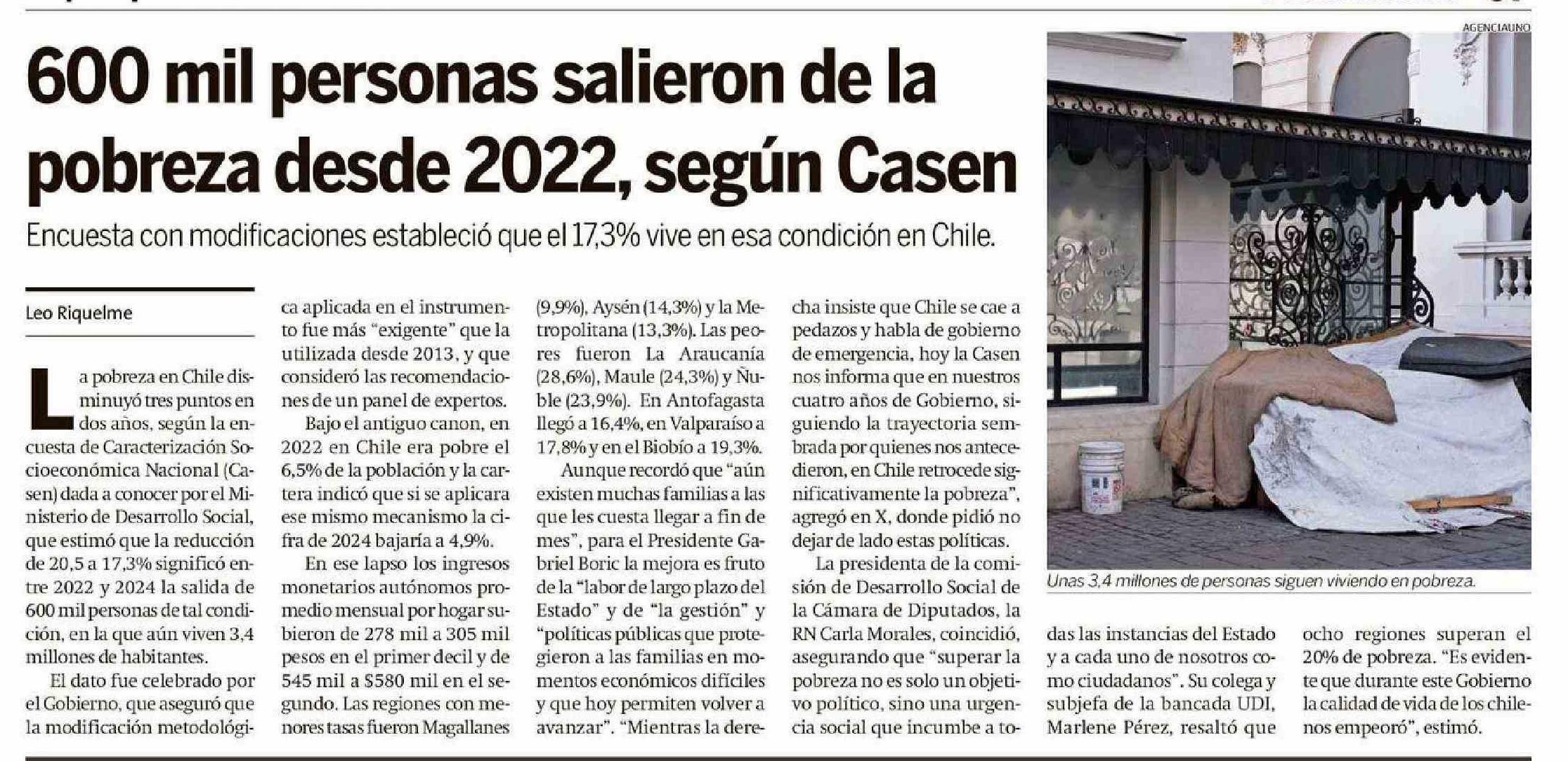 | Título: | 600 Mil personas salieron de la pobreza desde 2022, según Casen |