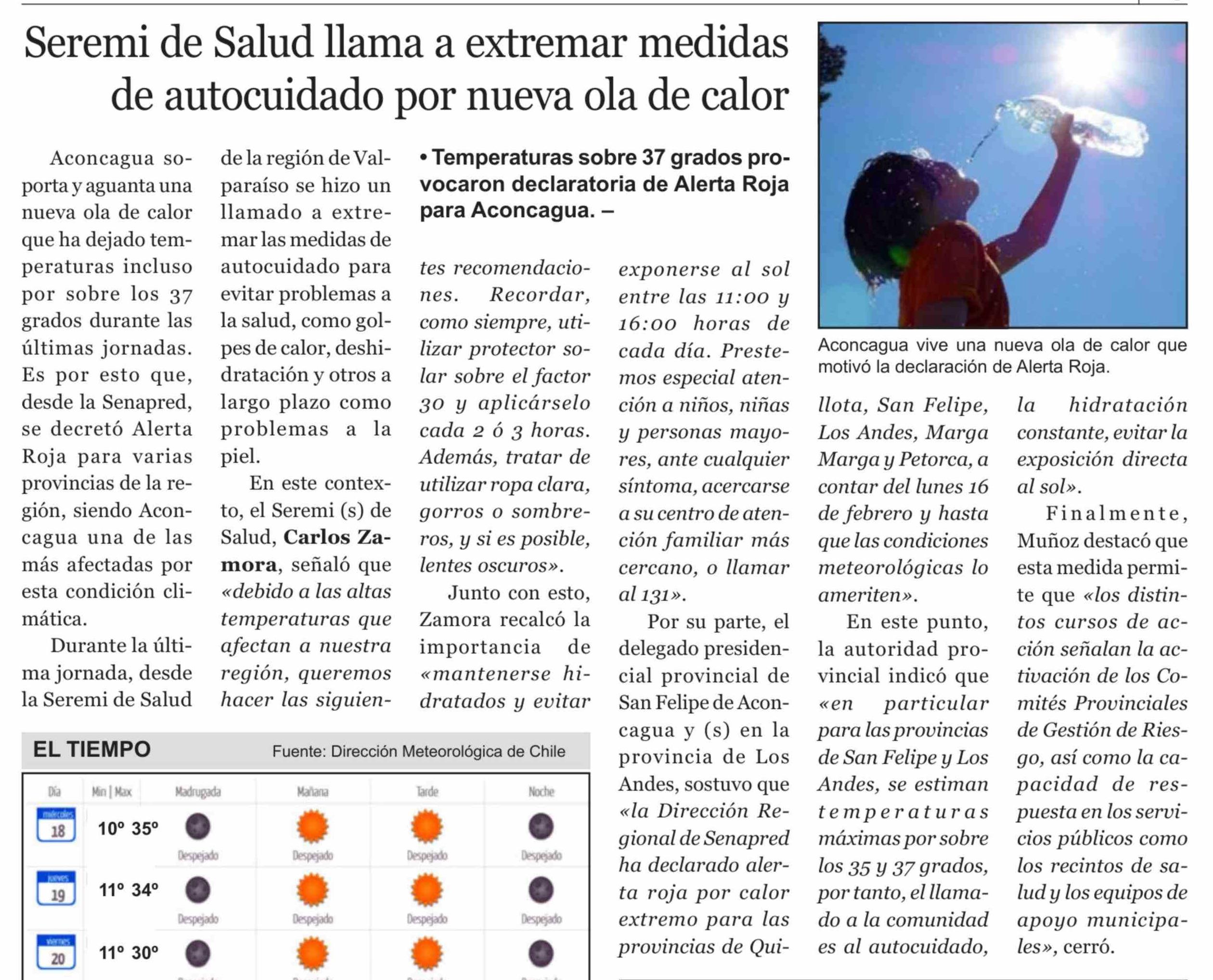 Seremi de Salud llama a extremar medidas de autocuidado por nueva ola de calor 18-02-2026 El Trabajo |