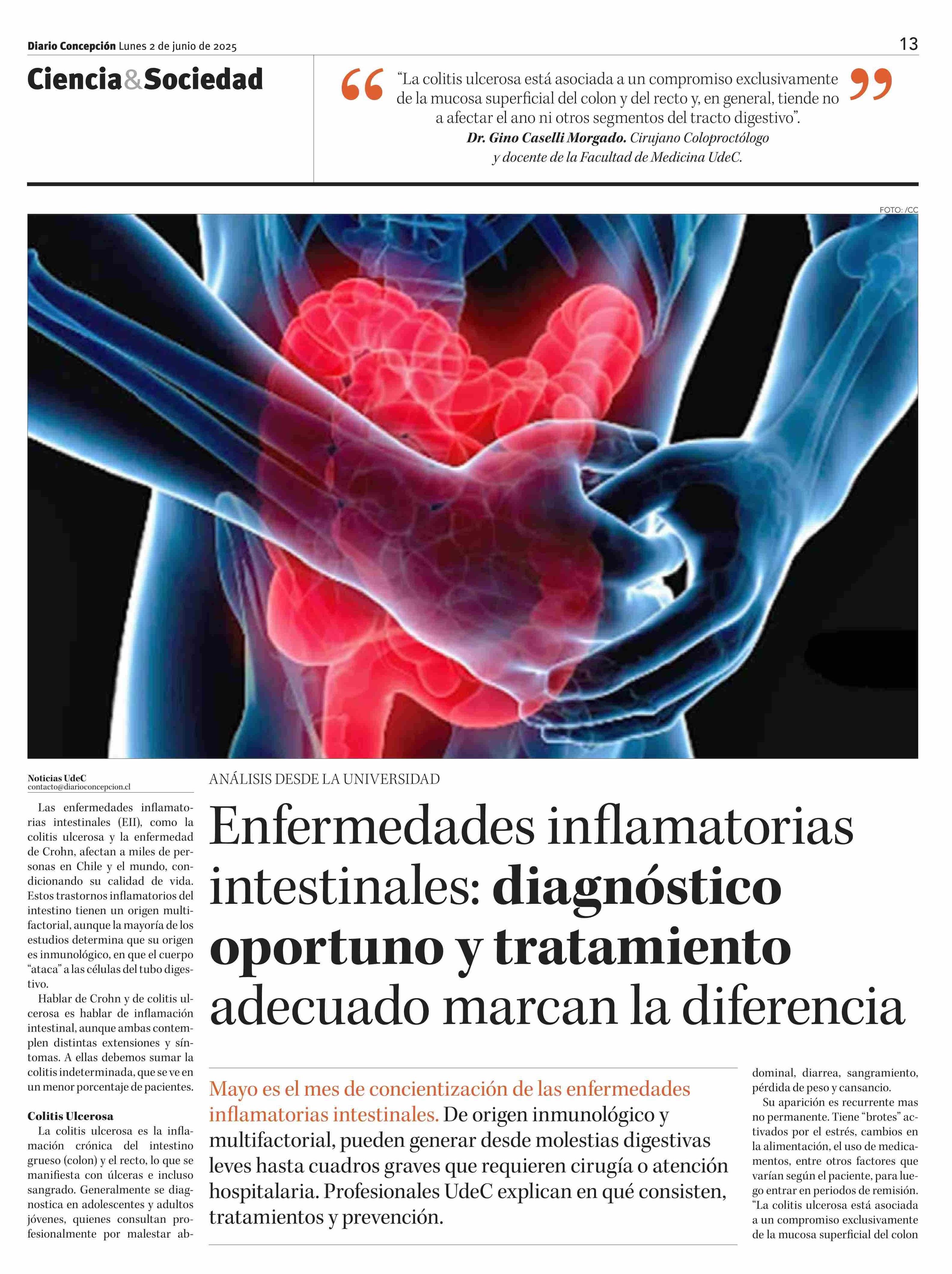 Enfermedades inflamatorias intestinales: diagnóstico oportuno y tratamiento adecuado marcan la diferencia 02-06-2025 Diario Concepción |