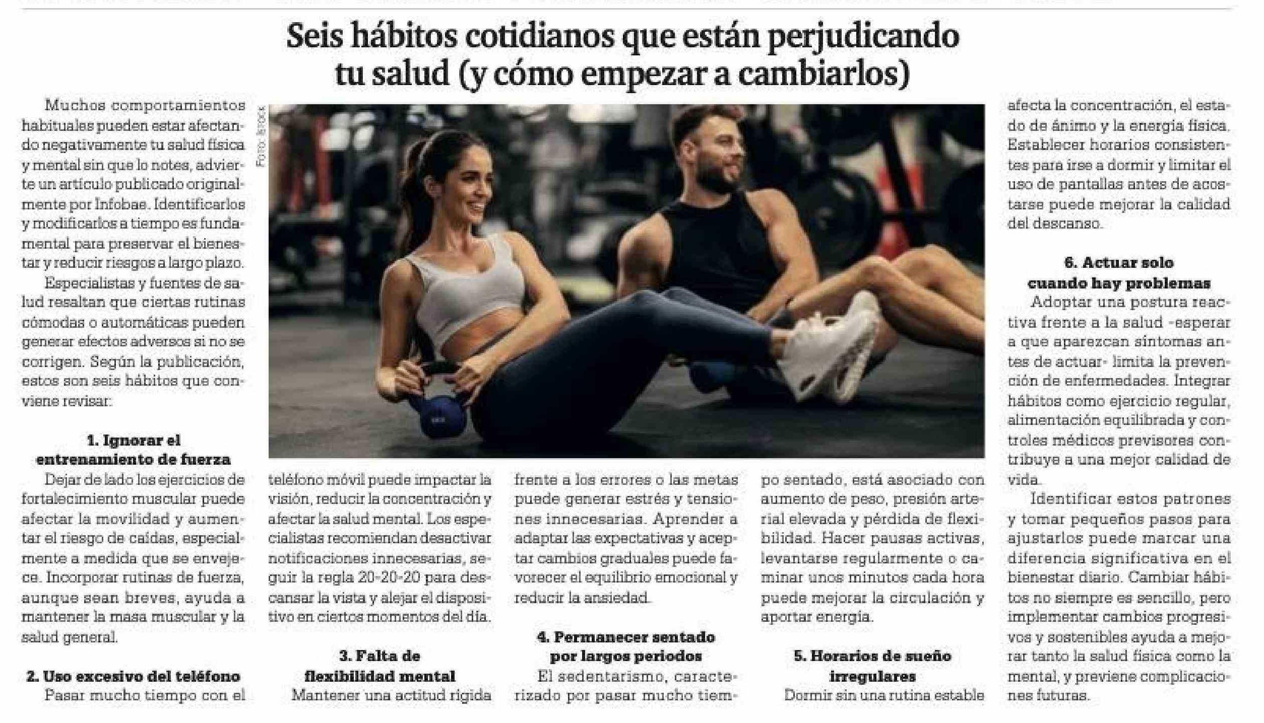 Seis hábitos cotidianos que están perjudicando tu salud (y cómo empezar a cambiarlos) 14-01-2026 La Prensa Austral |