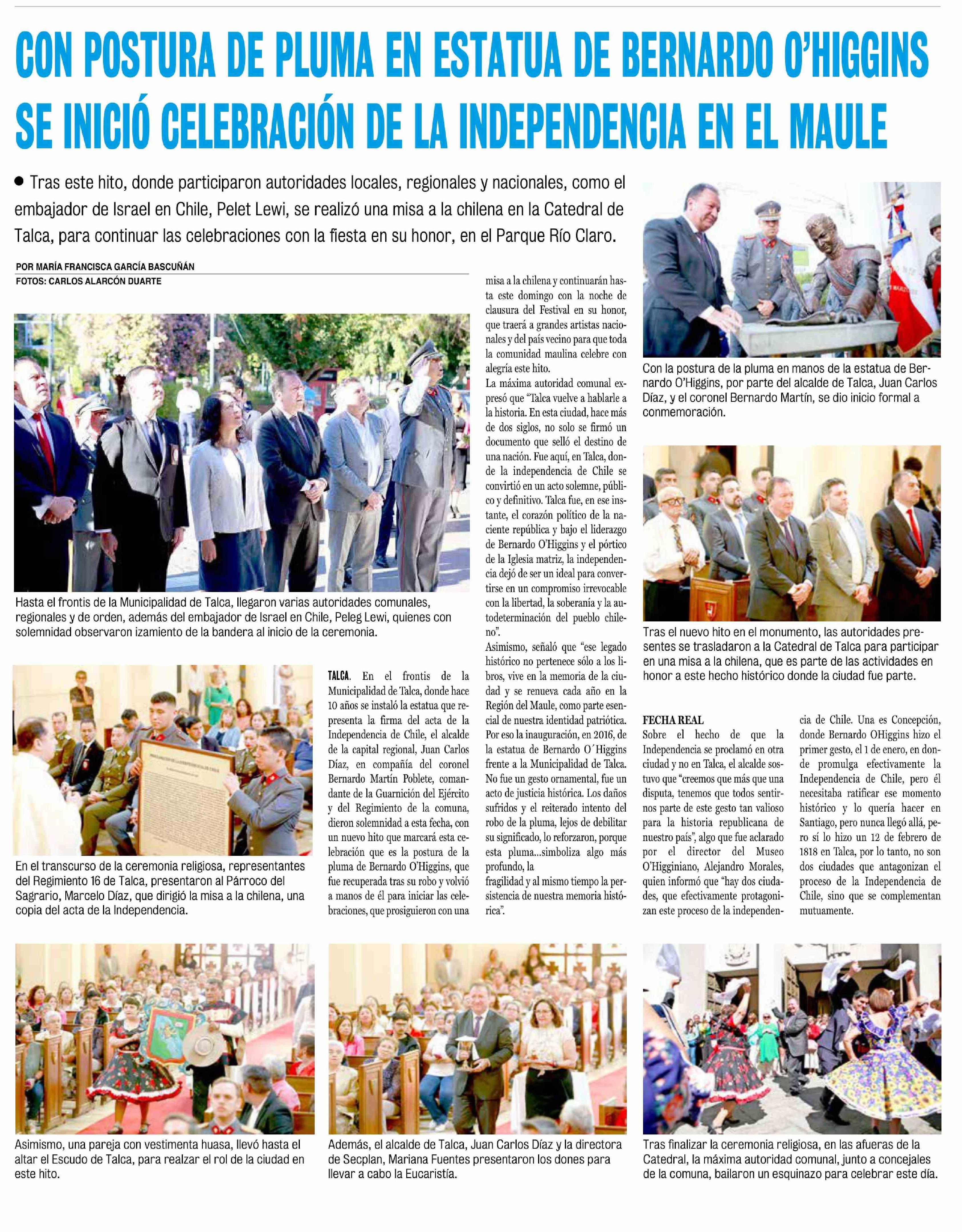 | Título: | CON POSTURA DE PLUMA EN ESTATUA DE BERNARDO O'HIGGINS SE INICIÓ CELEBRACIÓN DE LA INDEPENDENCIA EN EL MAULE |