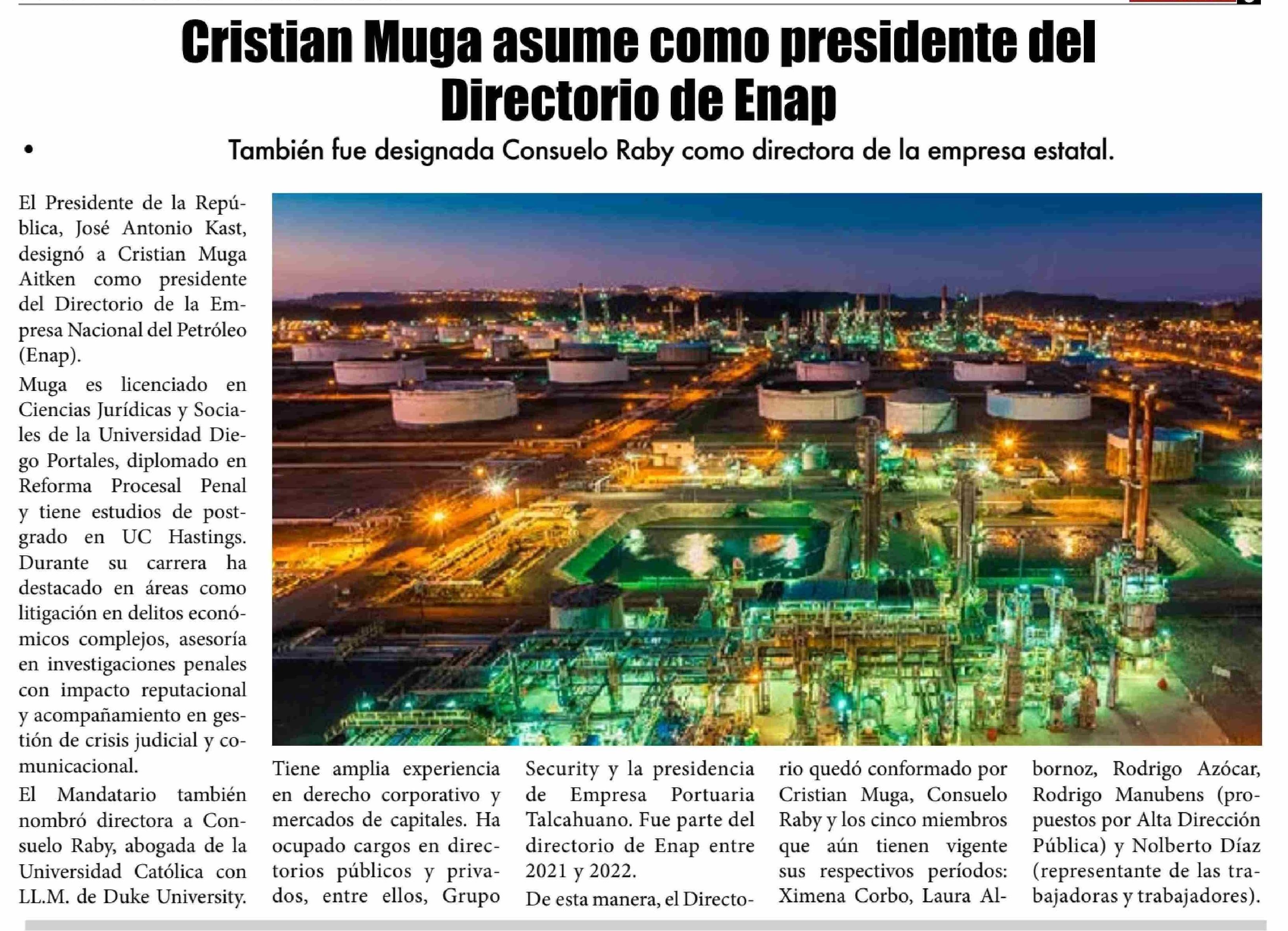 Título: Cristian Muga asume como presidente del Directorio de Enap